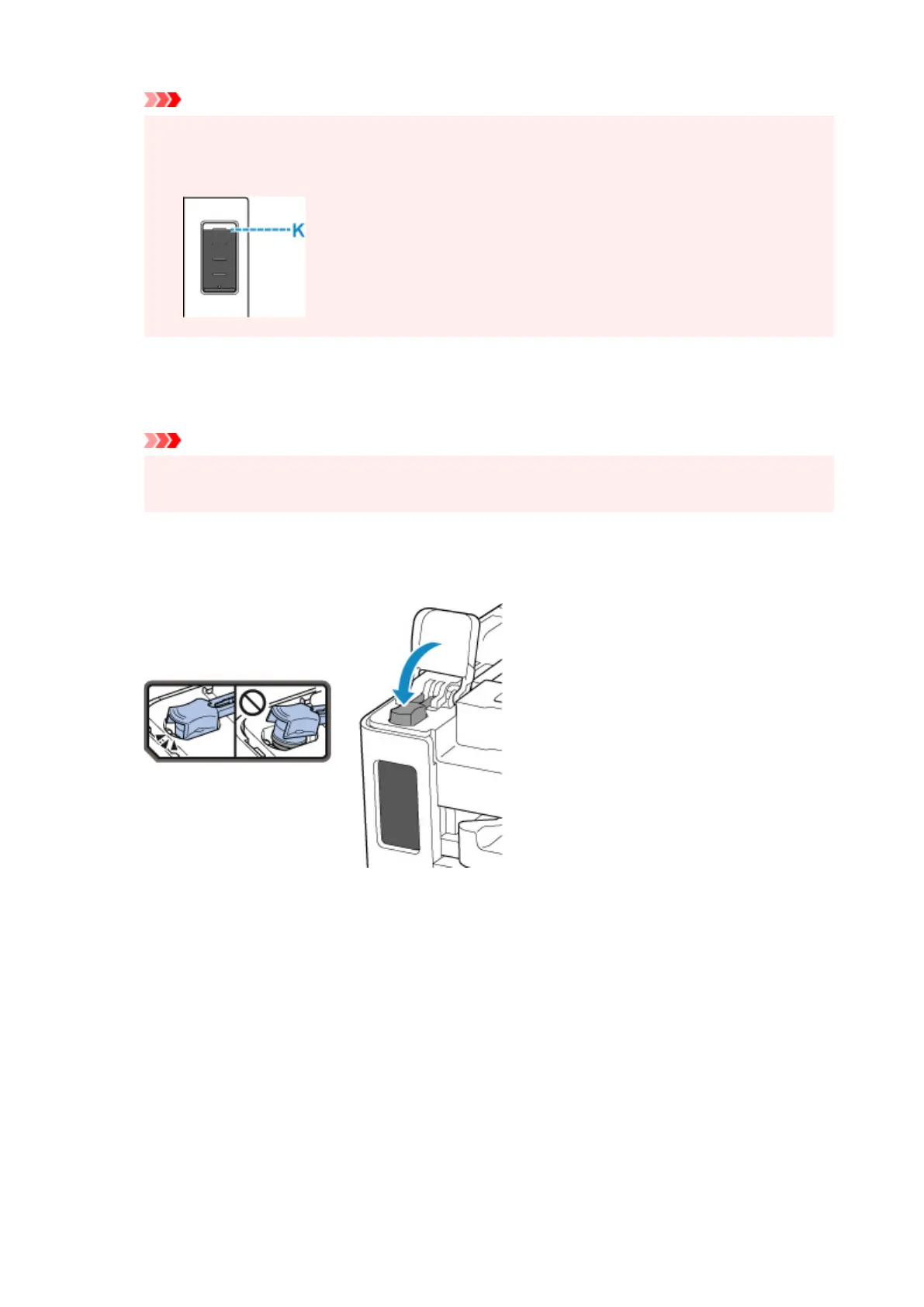 • Make sure that each color of ink tanks is filled with corresponding color of ink bottles.