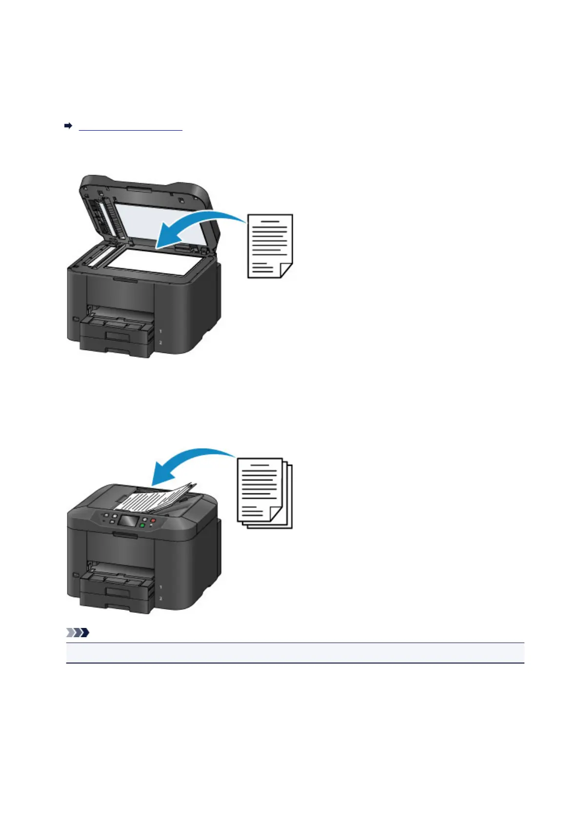 The machine has two positions to load originals: platen glass and ADF (Auto Document Feeder).