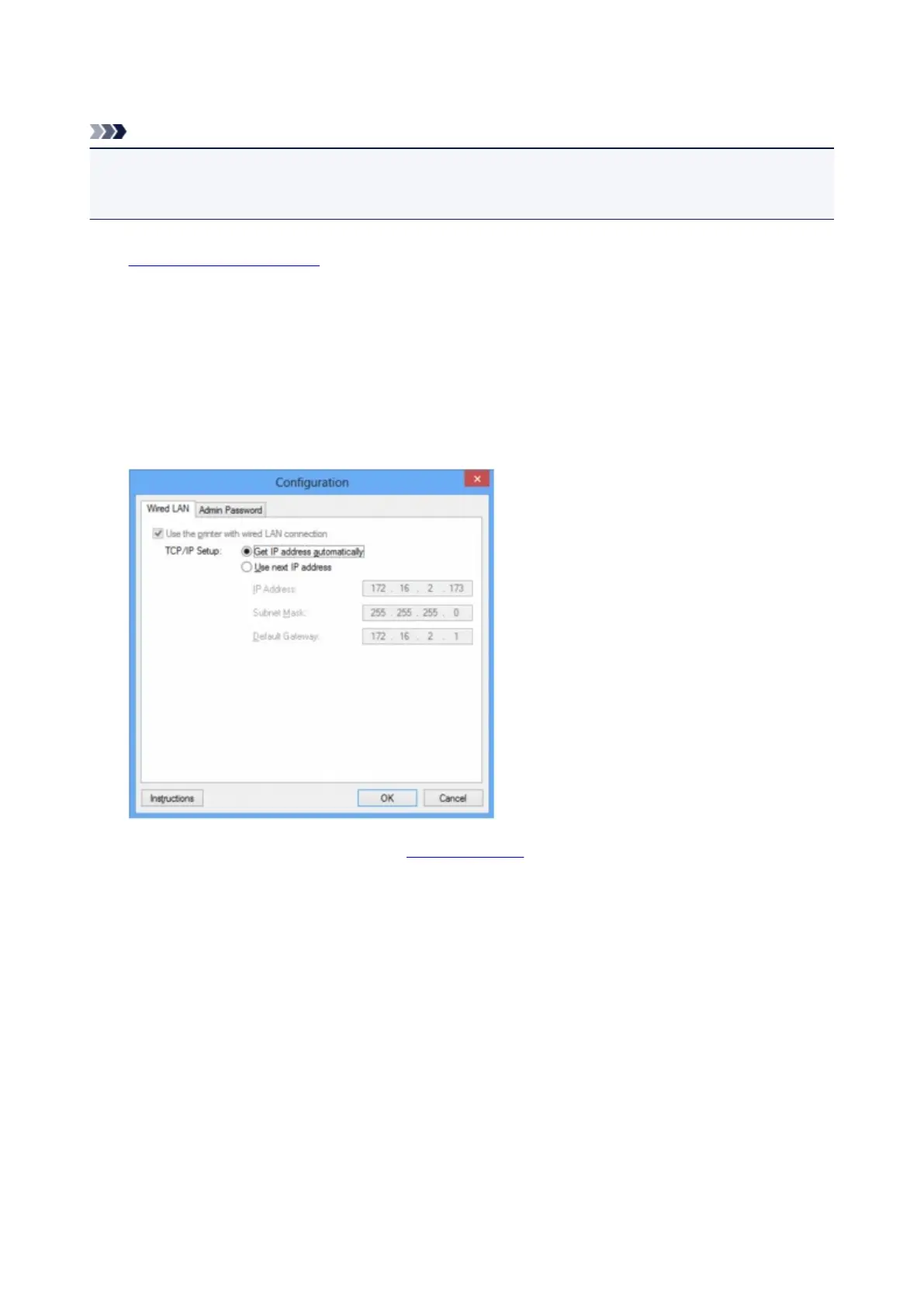 • Activate the wired LAN setting of the printer to change the settings in the Wired LAN sheet.