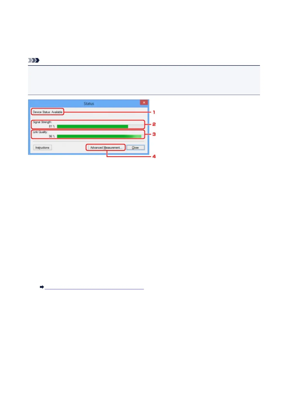 • When using wired LAN, Signal Strength:, Link Quality: and Advanced Measurement... are not