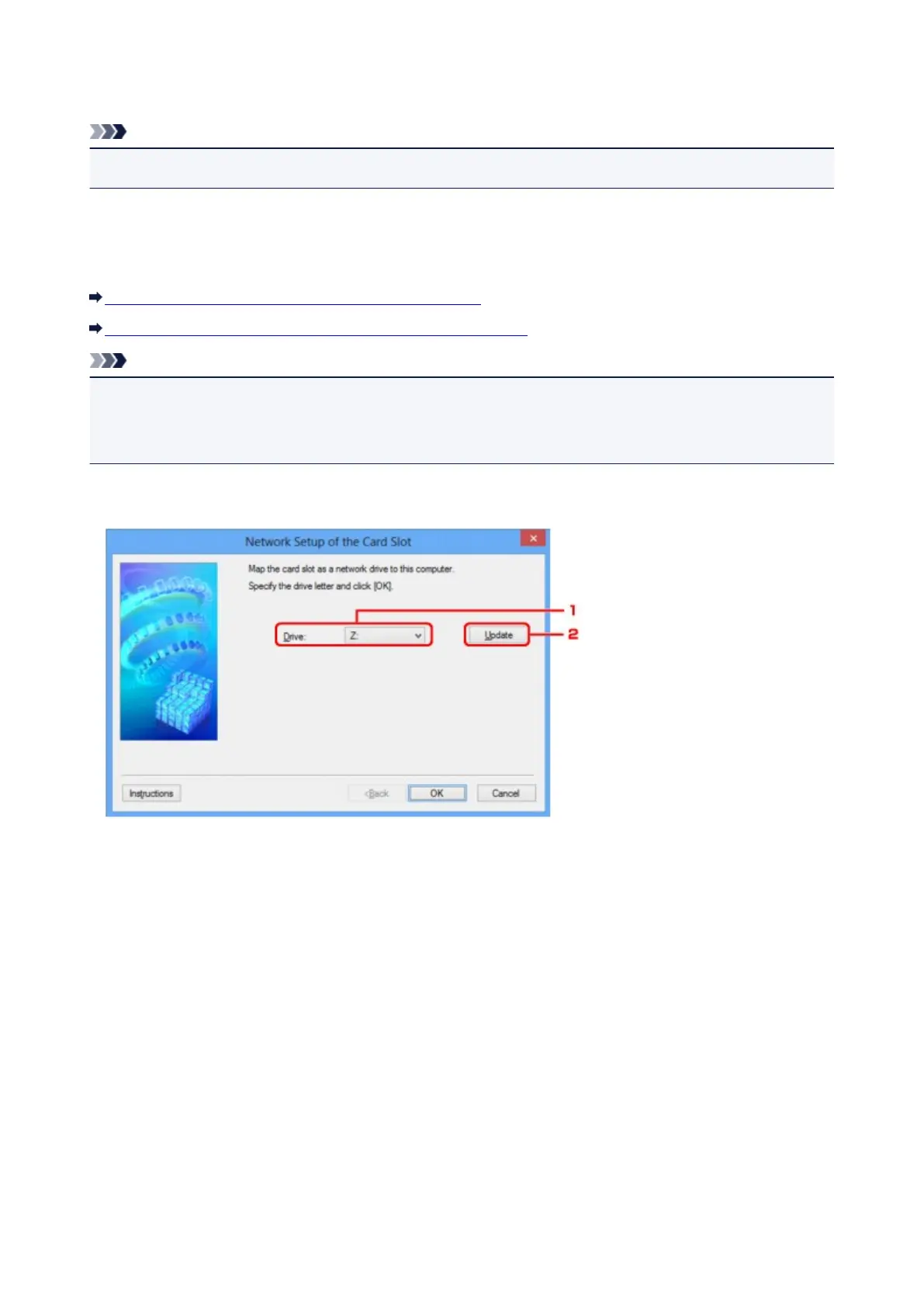 Displays settings of the card slot and allows you to map a card slot on the network as a network drive on the