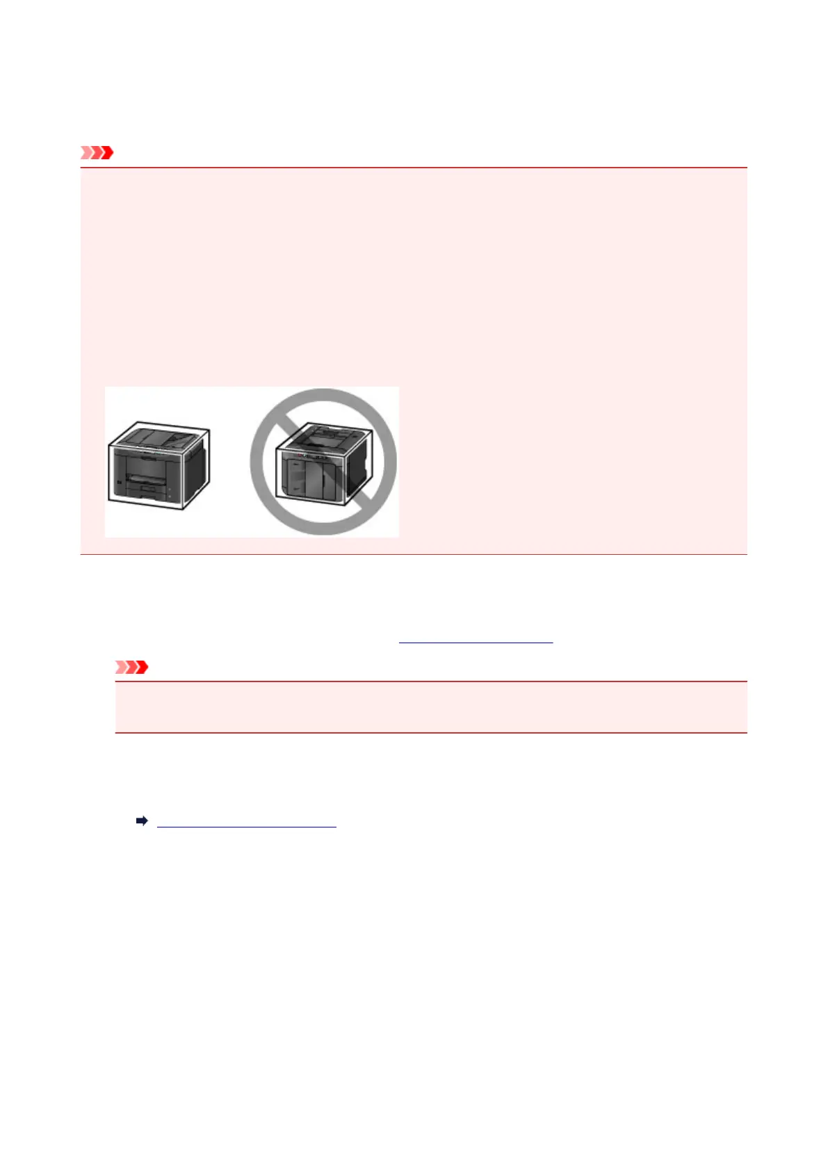 • Always transport the machine with ink tanks installed. If you transport the machine without ink tanks, ink