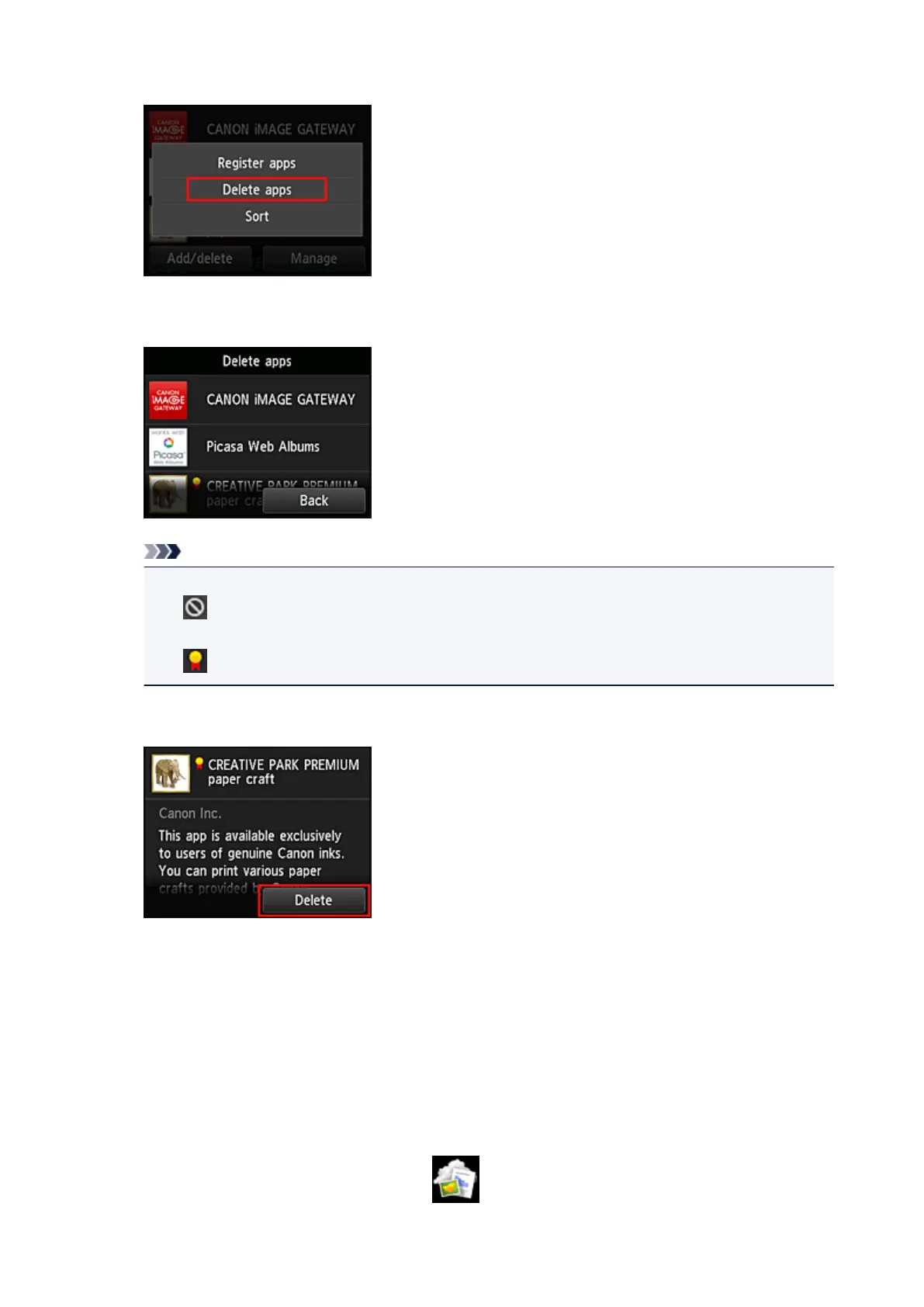 To end the app deletion, select Back and return to the cloud's Main screen.