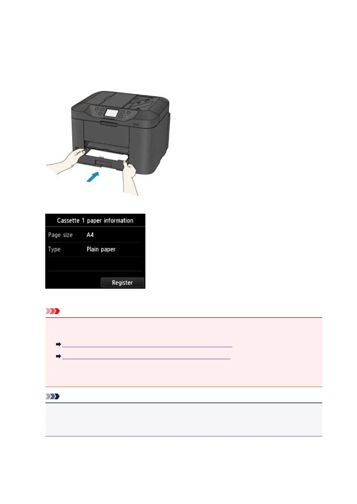 Register the paper size and the media type according to the loaded paper.