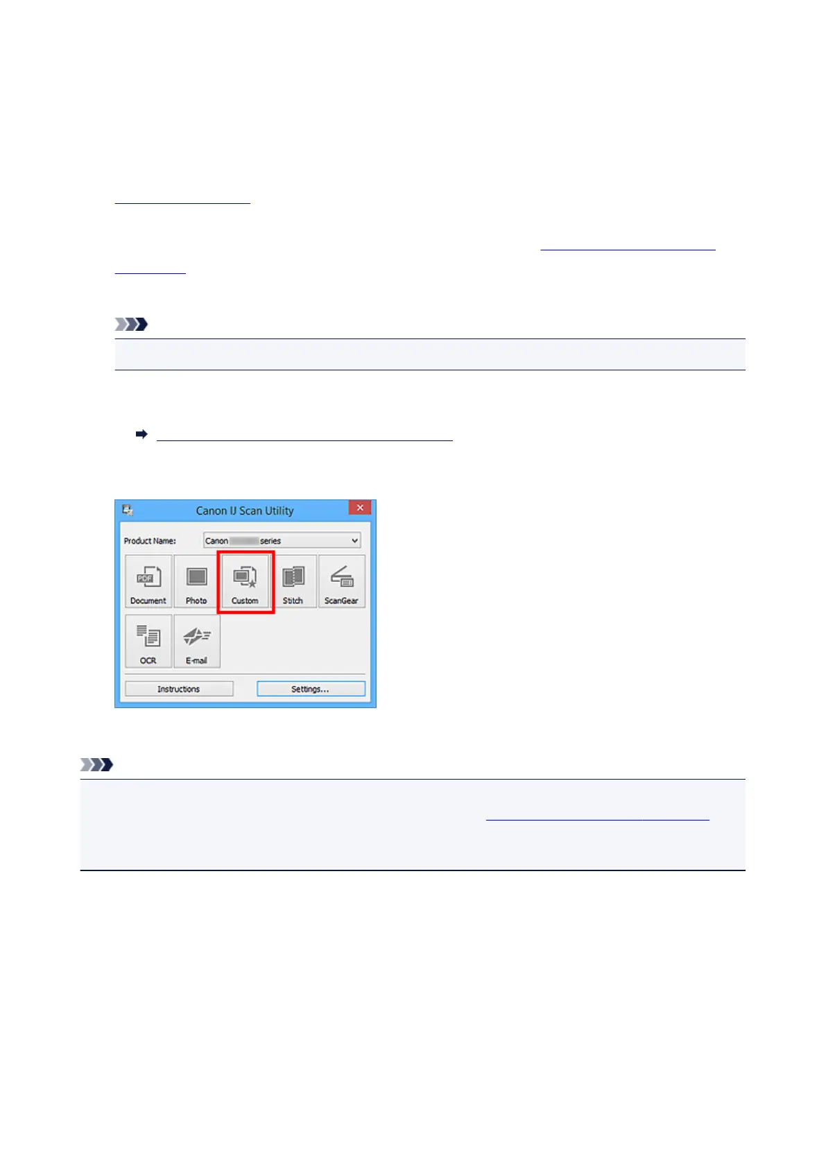 displayed by clicking Settings.... In the Settings (Custom Scan) dialog box, you can also make