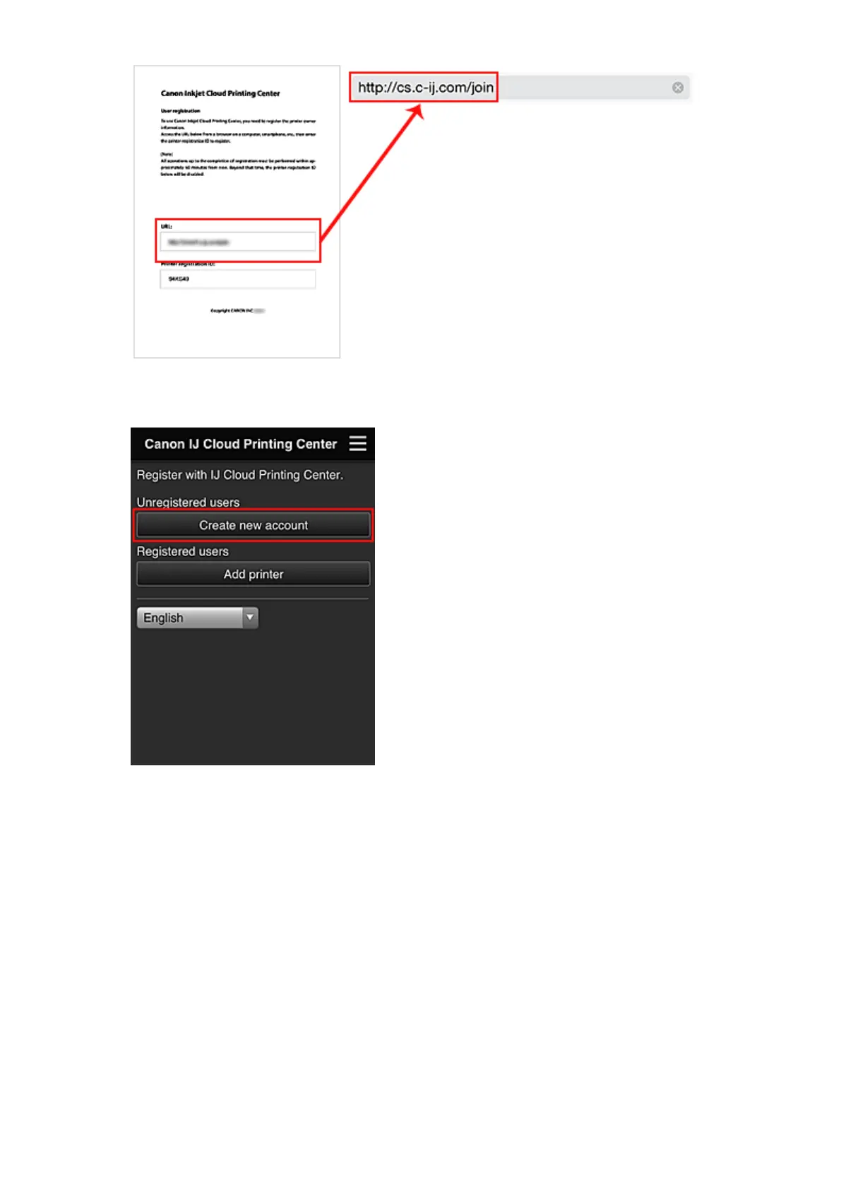 Enter the E-mail address and Printer registration ID of the printer's owner, and then