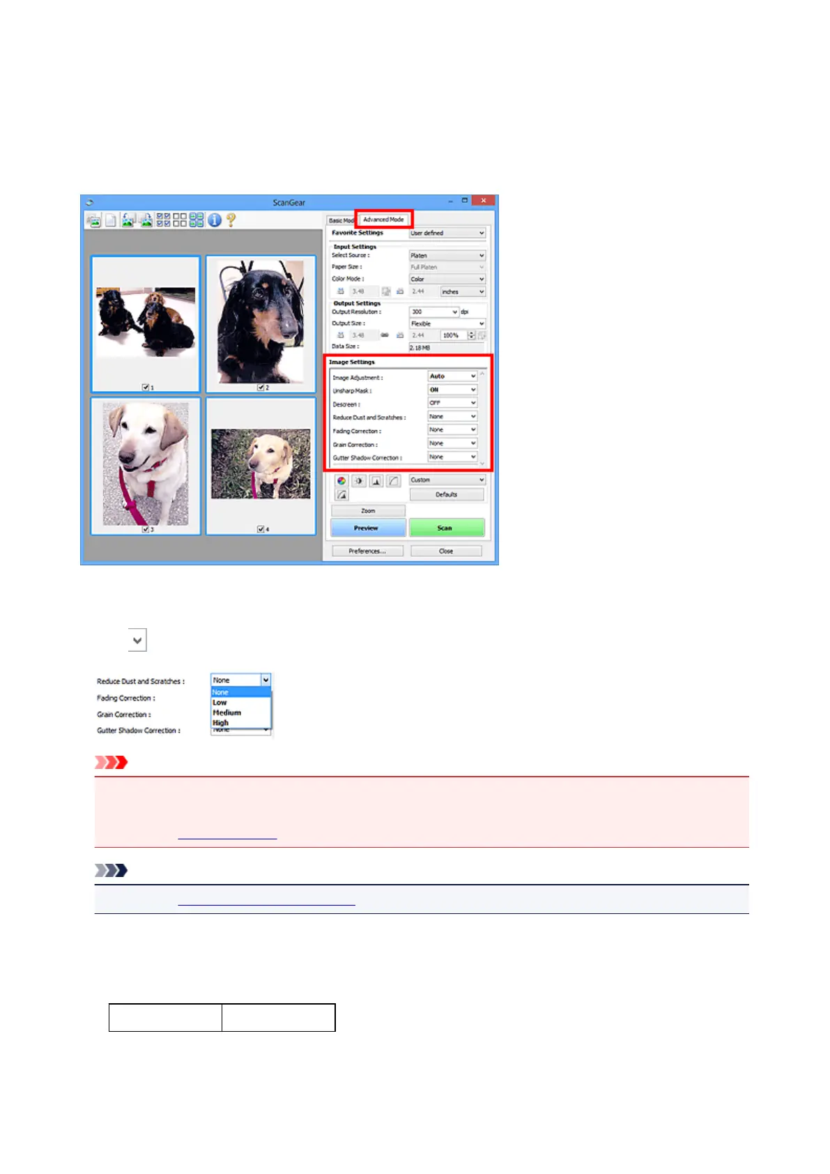 • Refer to "Scanning in Advanced Mode" to start the Advanced Mode tab of ScanGear and scan.