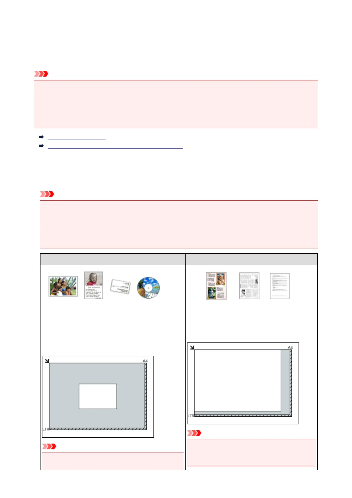 • When scanning by specifying the paper size in IJ Scan Utility or ScanGear (scanner driver), align an