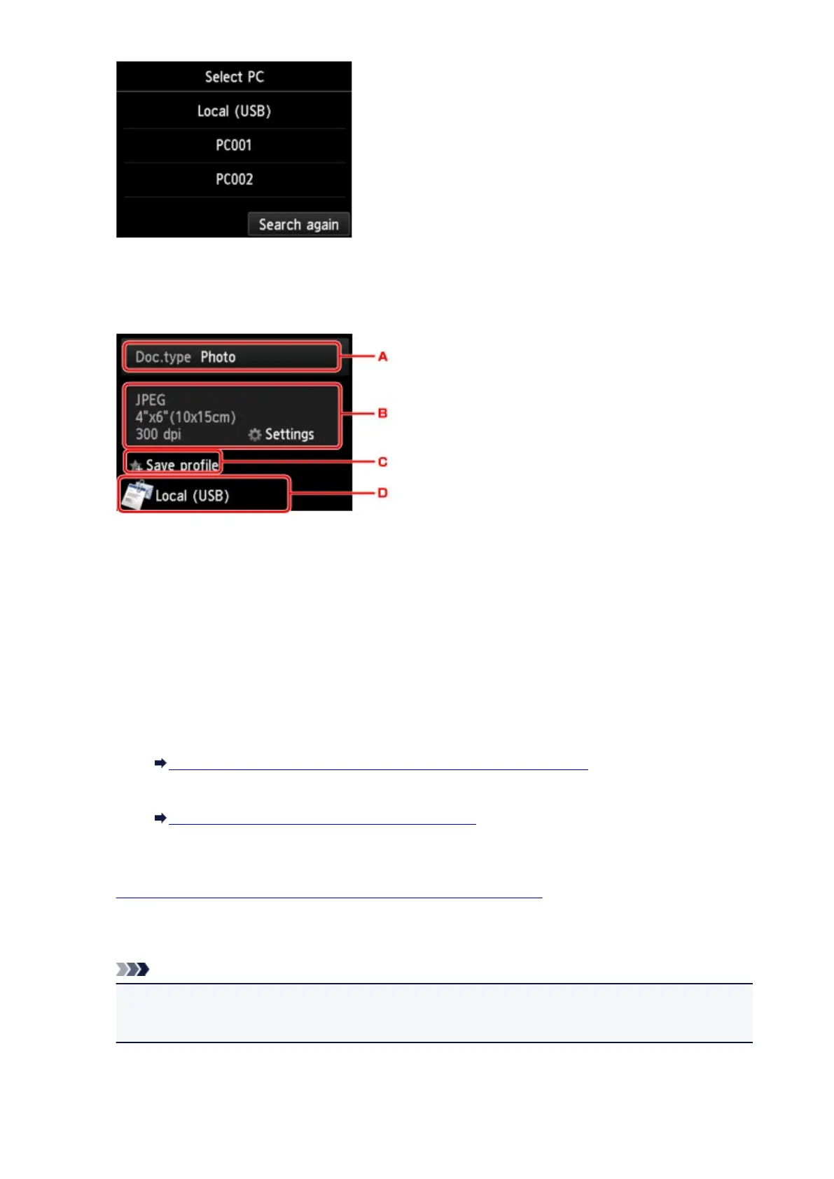 Scans the original on the platen glass as a photo data applying the settings specified in Scan
