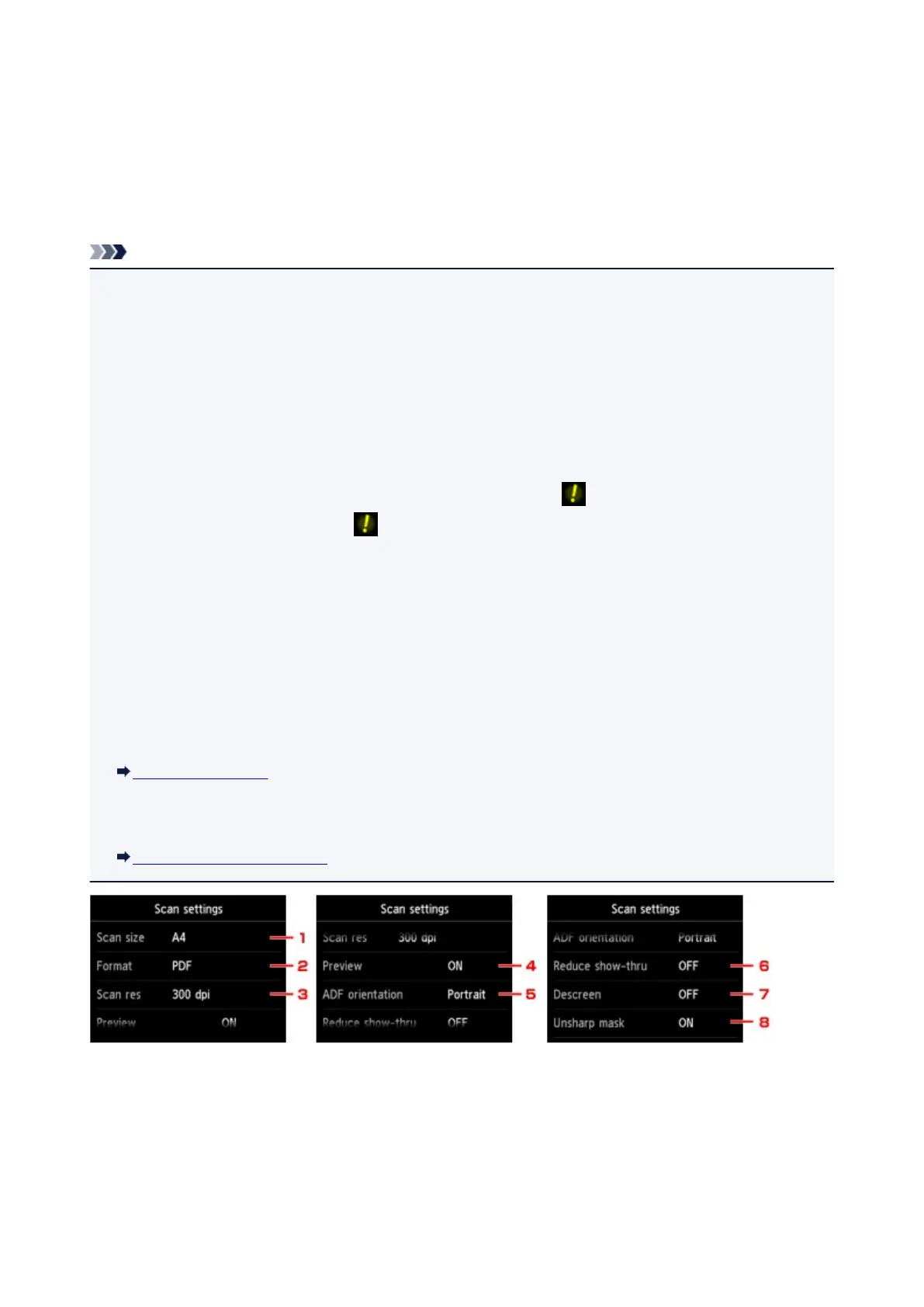 When scanning starts in the scan menu that is not available with the specified setting, The specified