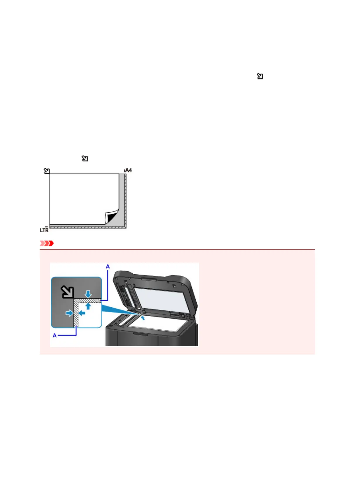 alignment mark . Portions placed on the diagonally striped area cannot be scanned.