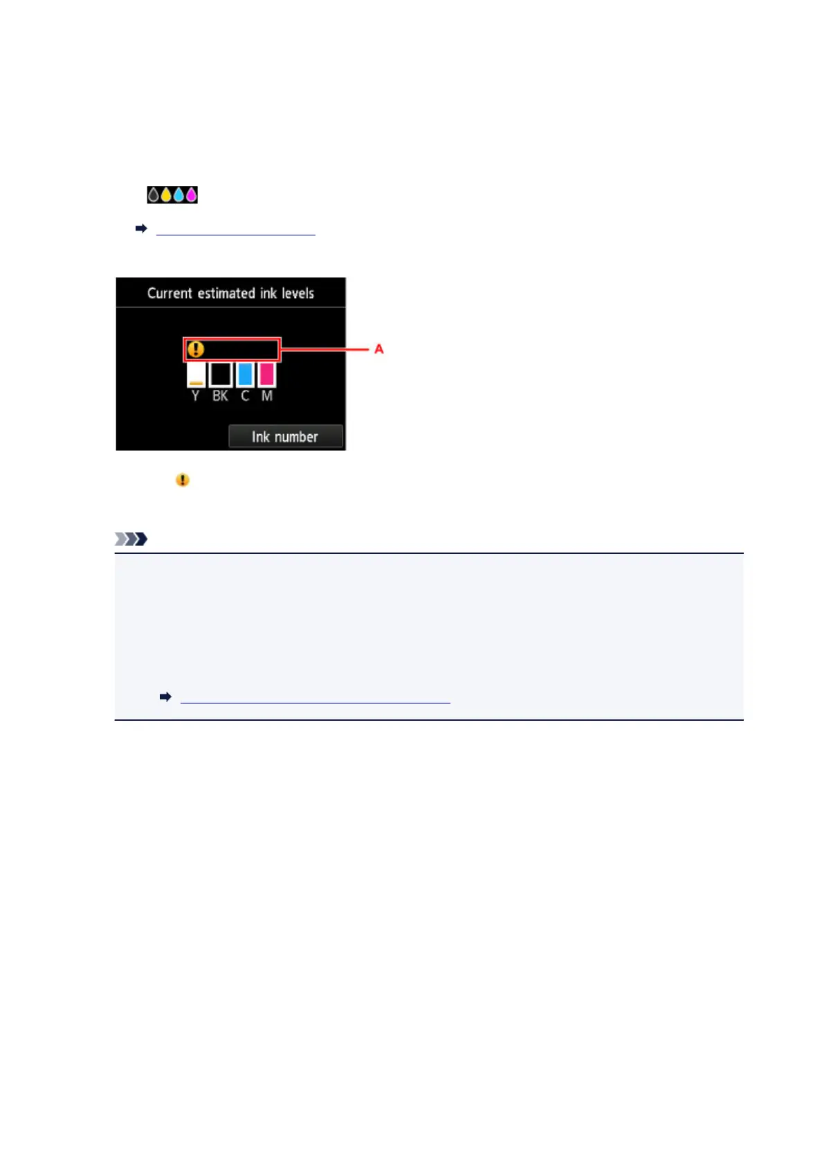 A symbol appears in the area (A) if there is any information about the remaining ink level.