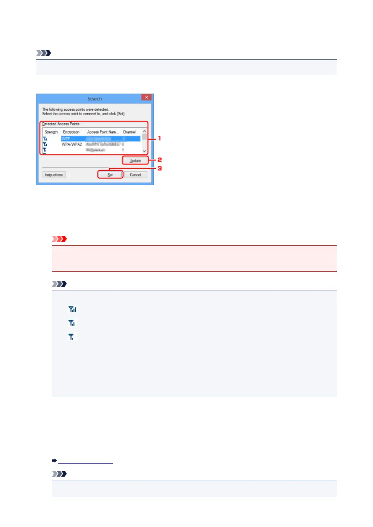 Click to update the list of access points when your target access point is not detected.
