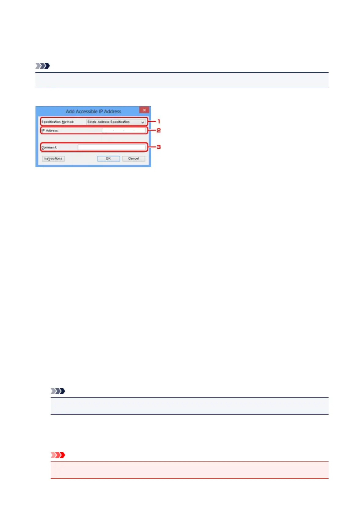 The example screenshots in this section refer to the Add Accessible IP Address Screen.