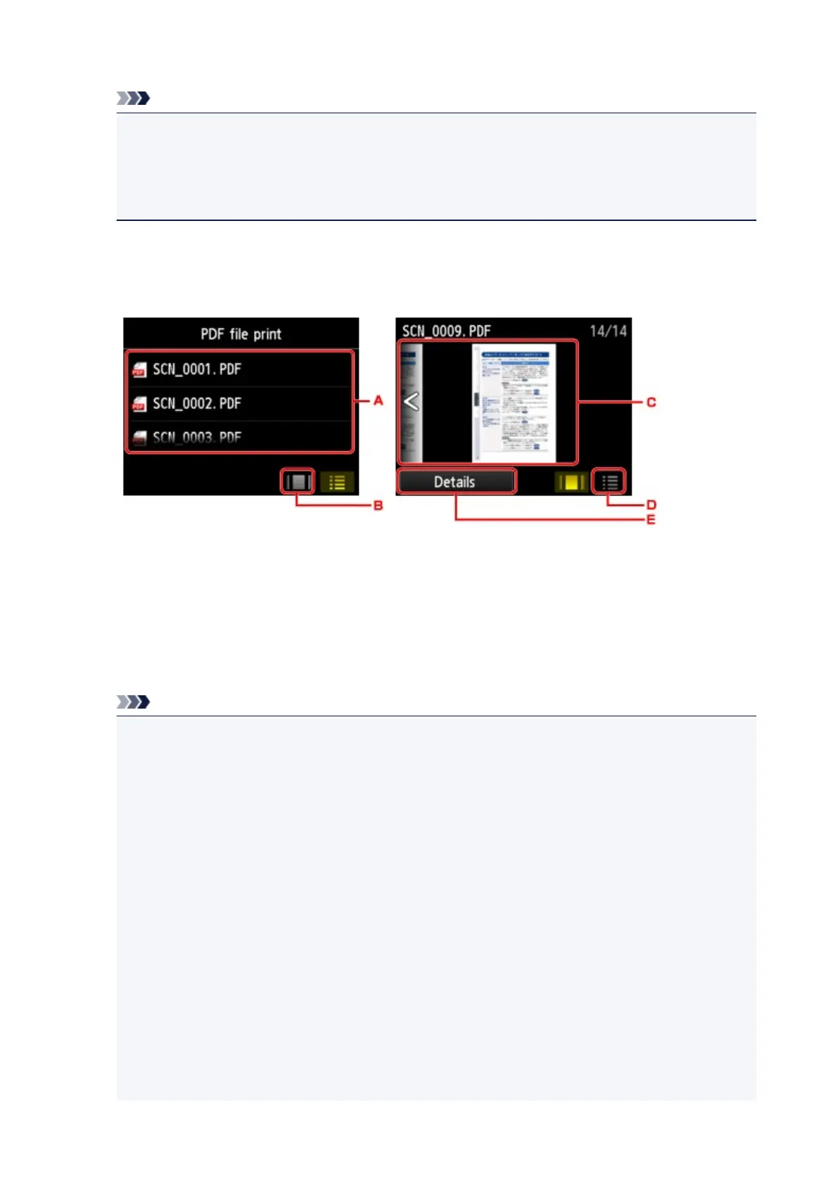 If both photo files and PDF files are saved on USB flash drive, the confirmation screen to select