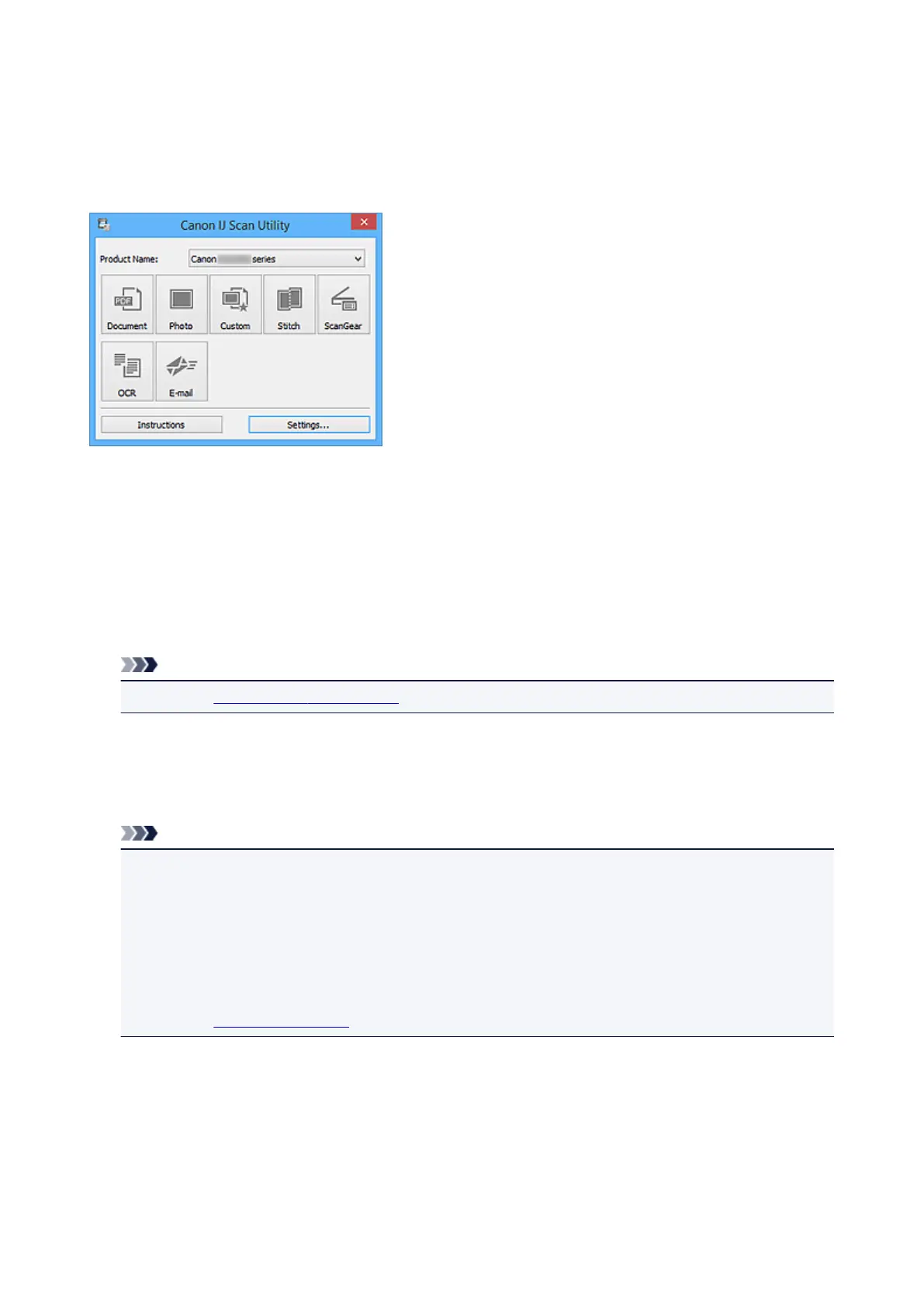 • Refer to "IJ Scan Utility Main Screen" for details on the IJ Scan Utility main screen.