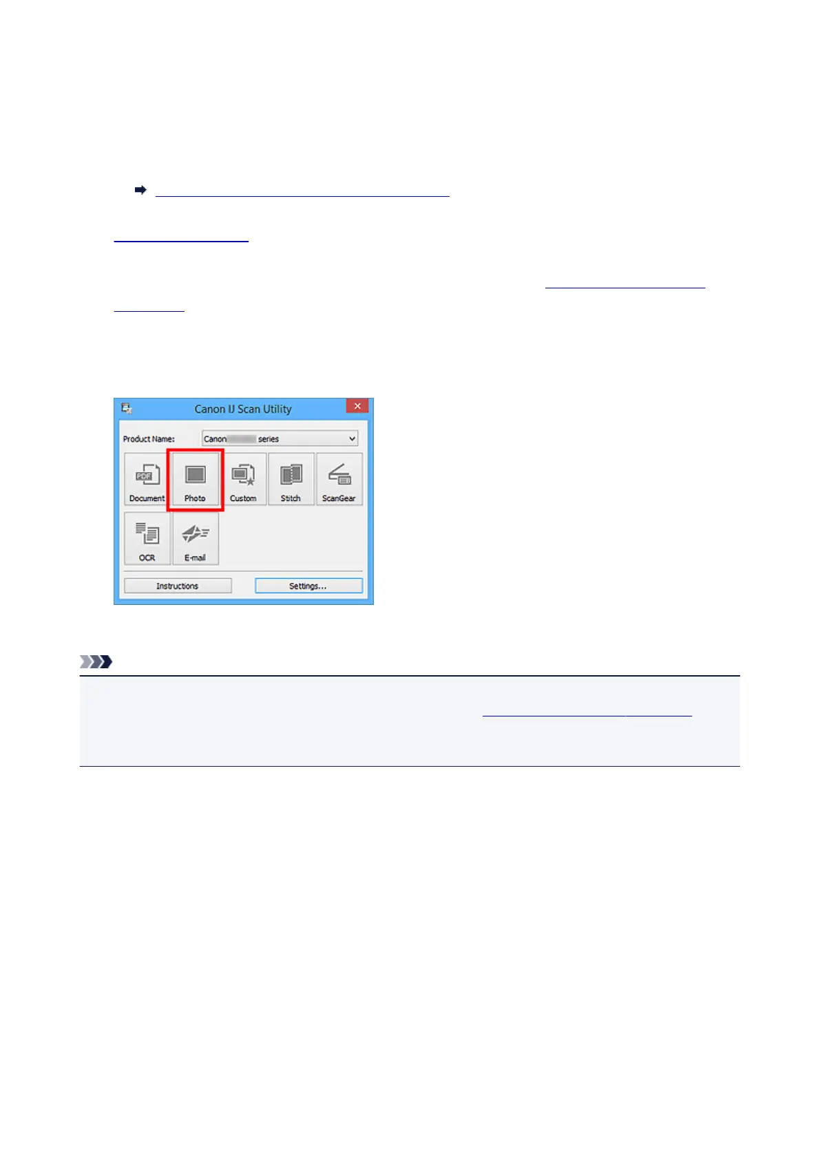 displayed by clicking Settings.... In the Settings (Photo Scan) dialog box, you can also make