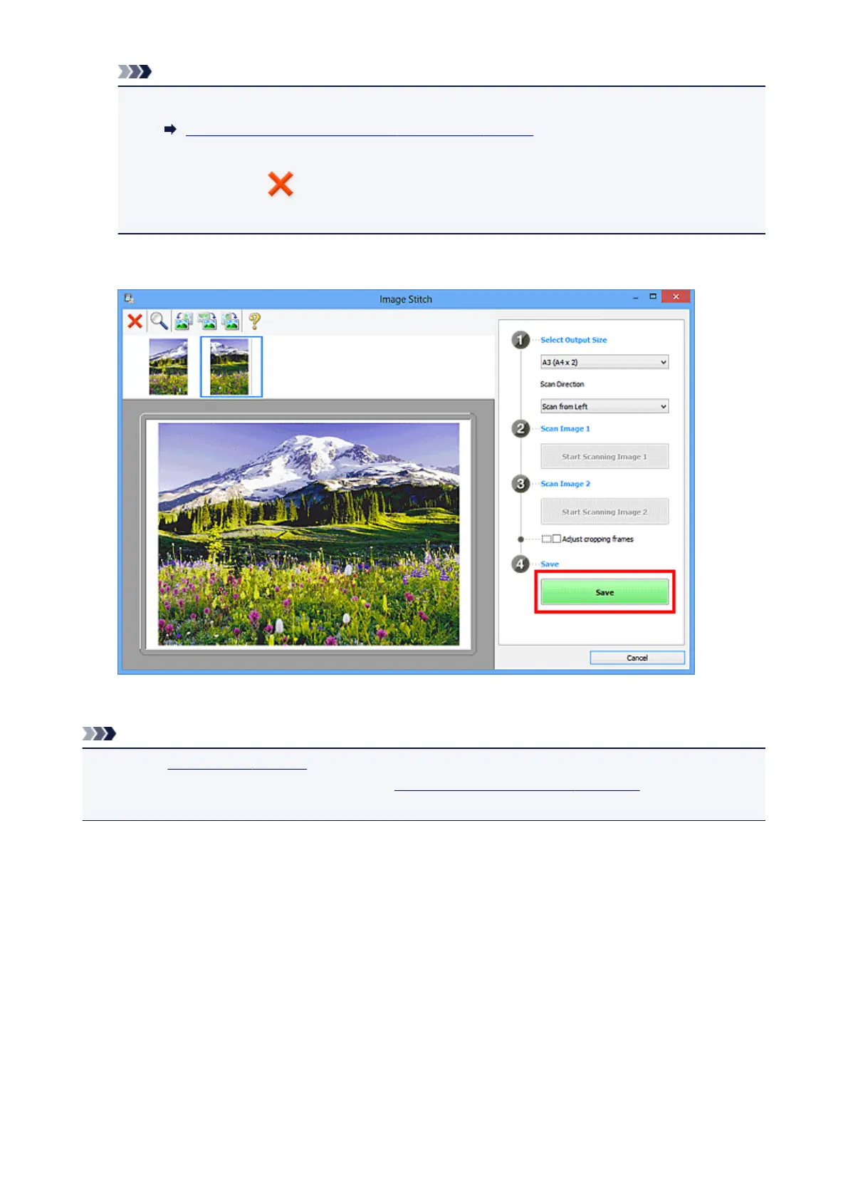 Adjusting Cropping Frames in the Image Stitch Window
