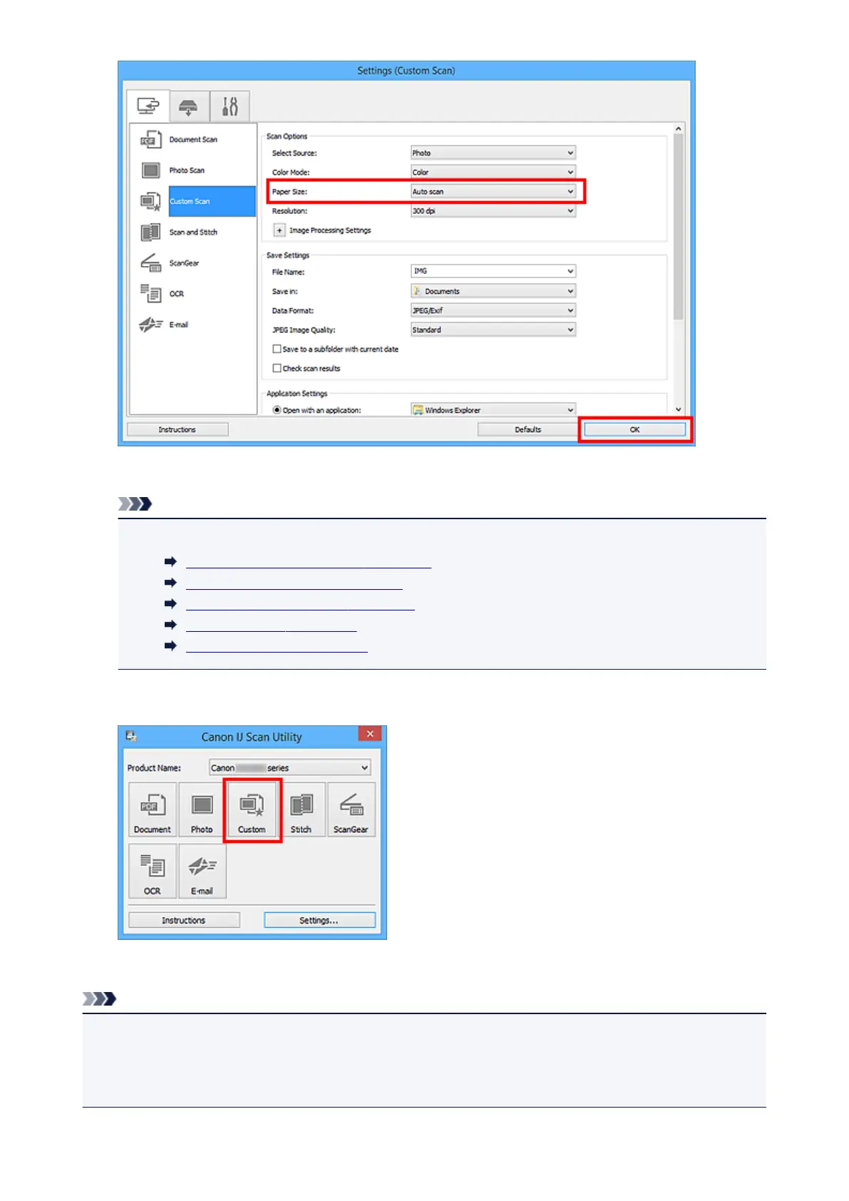 displayed by clicking Settings.... In each Settings dialog box, you can also make advanced scan