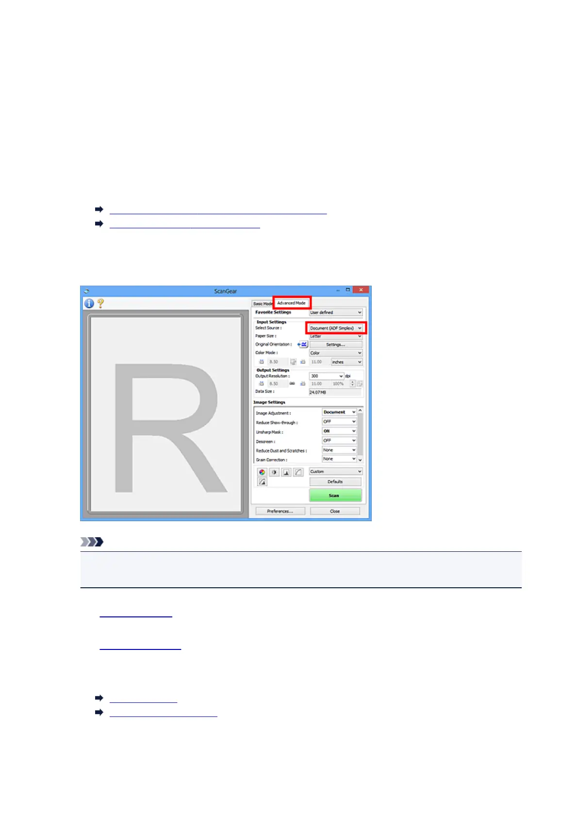 Click the Advanced Mode tab and select Document (ADF Simplex) or Document (ADF