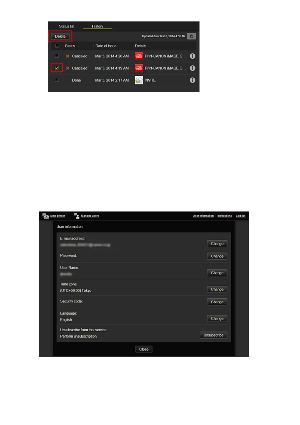 This displays the latest notice. Nothing is displayed in this area if there is no notice.