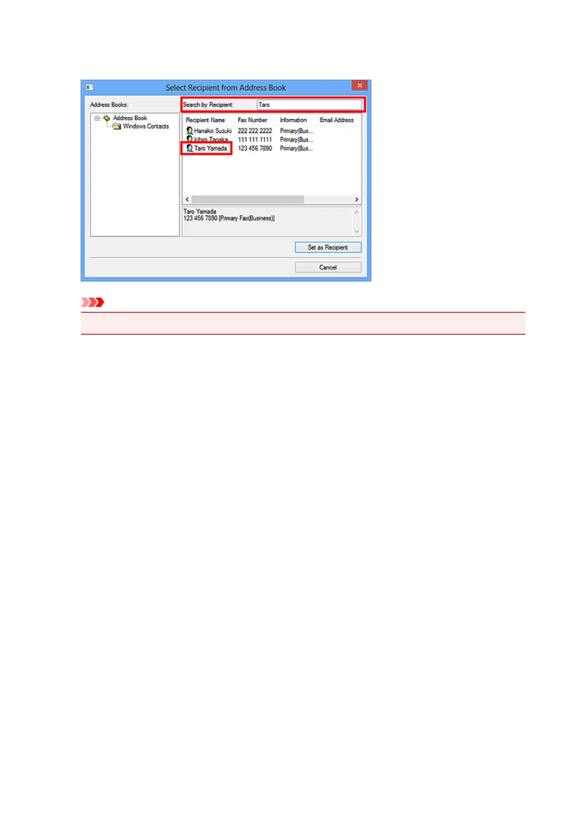 While the name is selected, click Set as Recipient to enter it as the recipient.