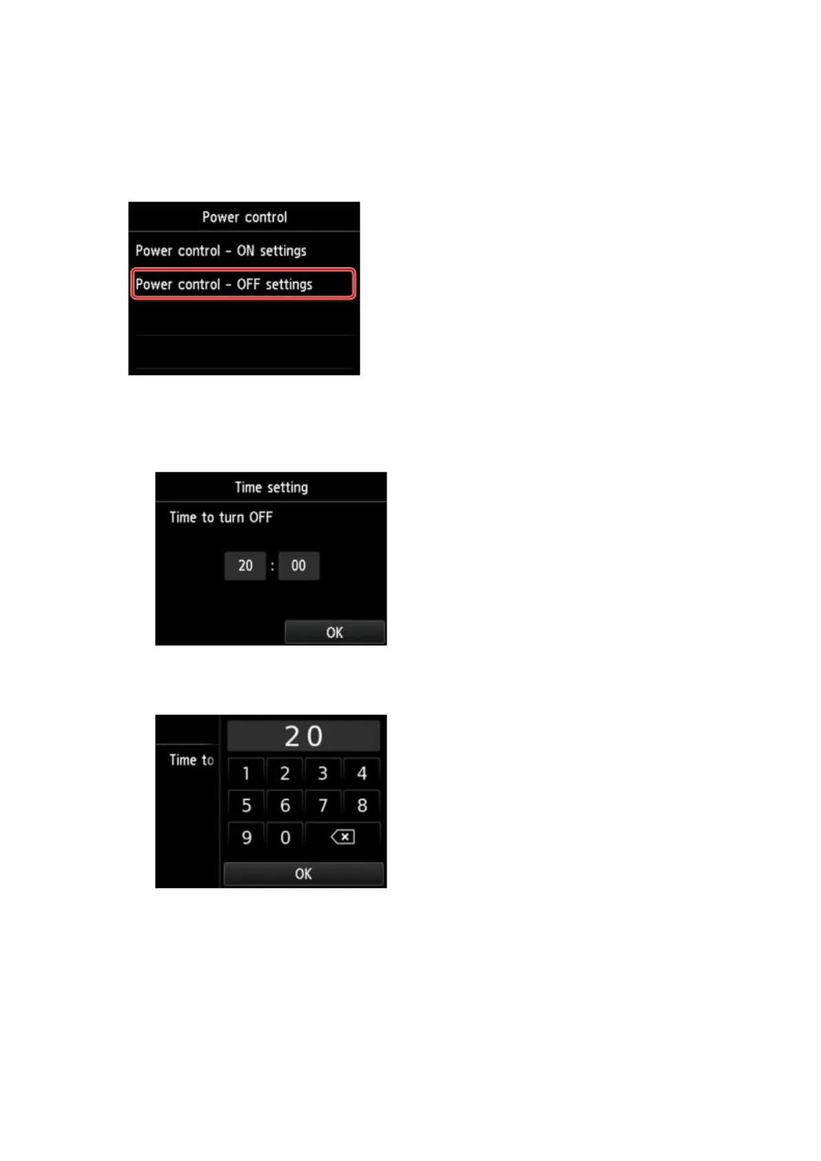After confirming the time to turn the machine off, the screen to specify the day is displayed. Tap