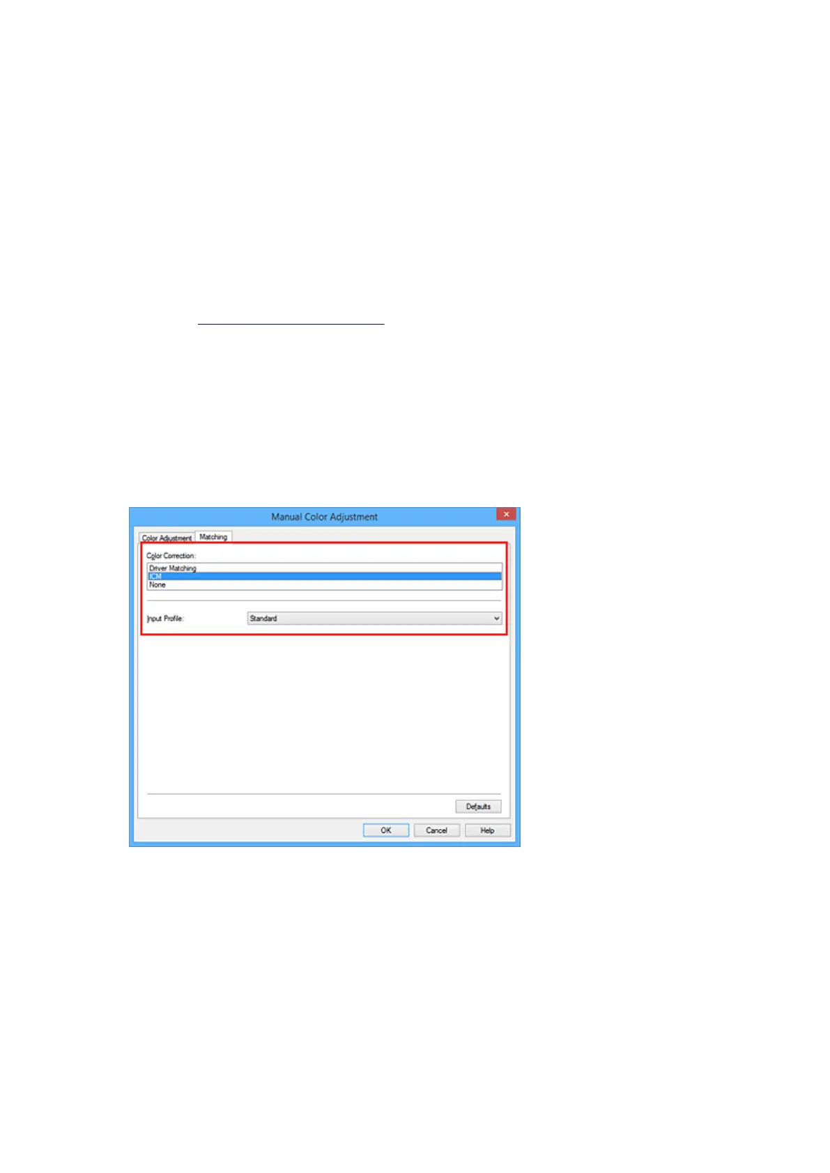 Click Matching tab, and select ICM (ICC Profile Matching) for Color Correction.