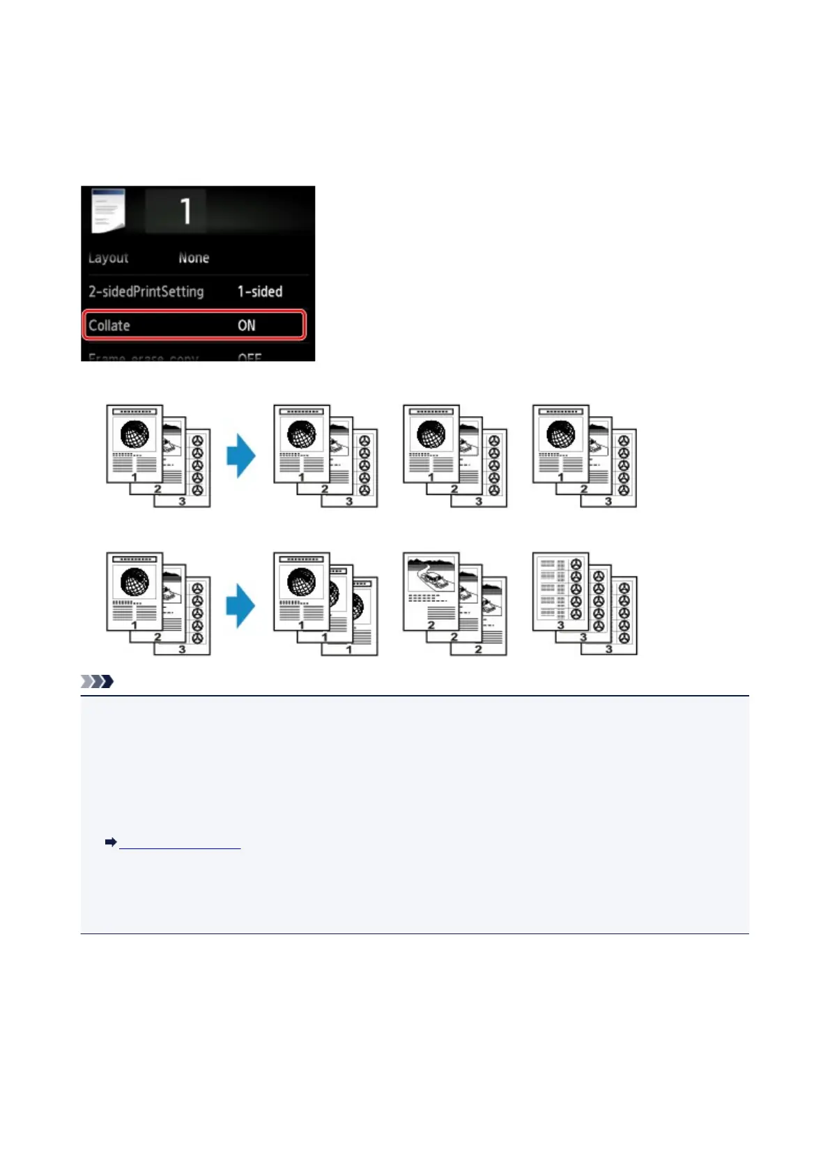 When you select ON for Collate in Copy, you can obtain sorted printouts when making multiple copies of a