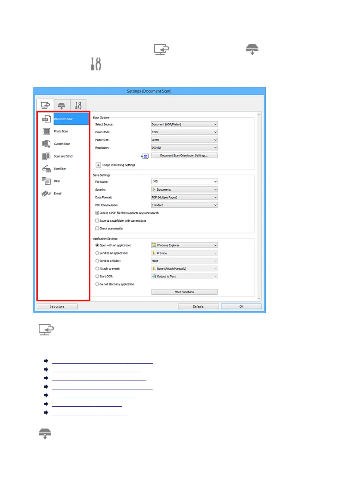 Settings (Document Scan) Dialog Box