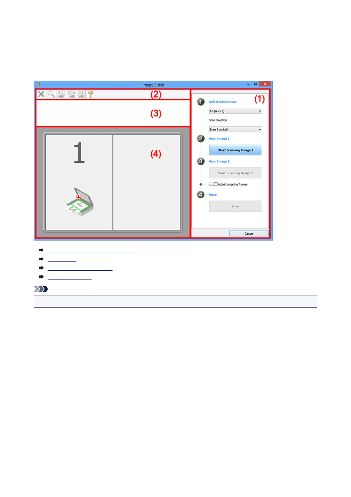 Click Stitch in the IJ Scan Utility main screen to display the Image Stitch window.