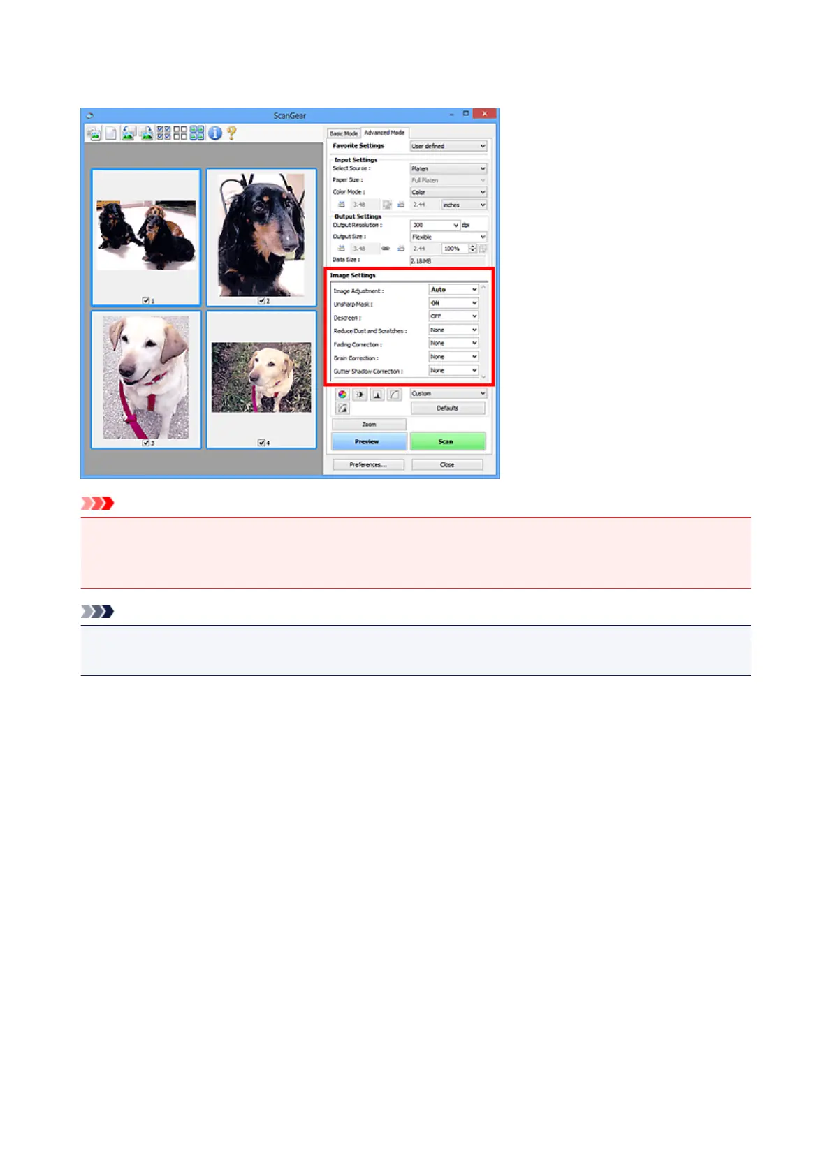 Do not apply these functions to images without moire, dust/scratches, or faded colors. The color tone