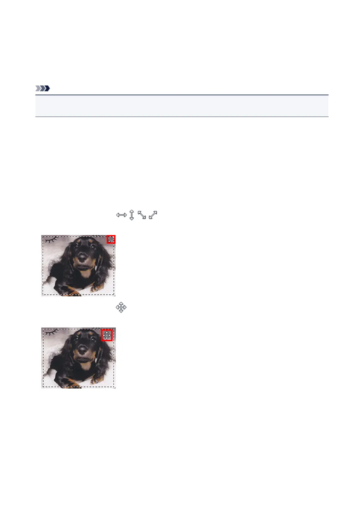 The cursor will change into (Crosshair Arrow) when it is positioned within a cropping frame. Click and