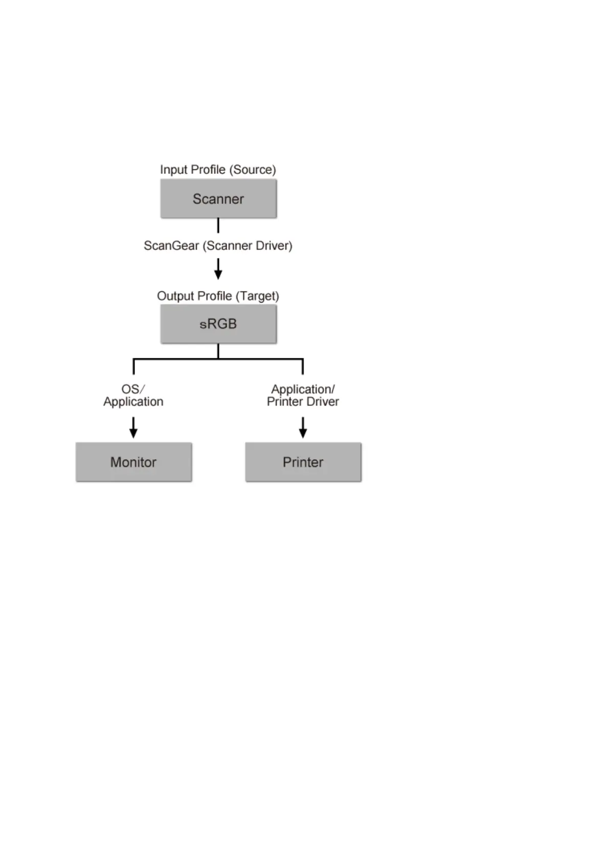 The image's color space is converted from the scanner's color space to sRGB by ScanGear.