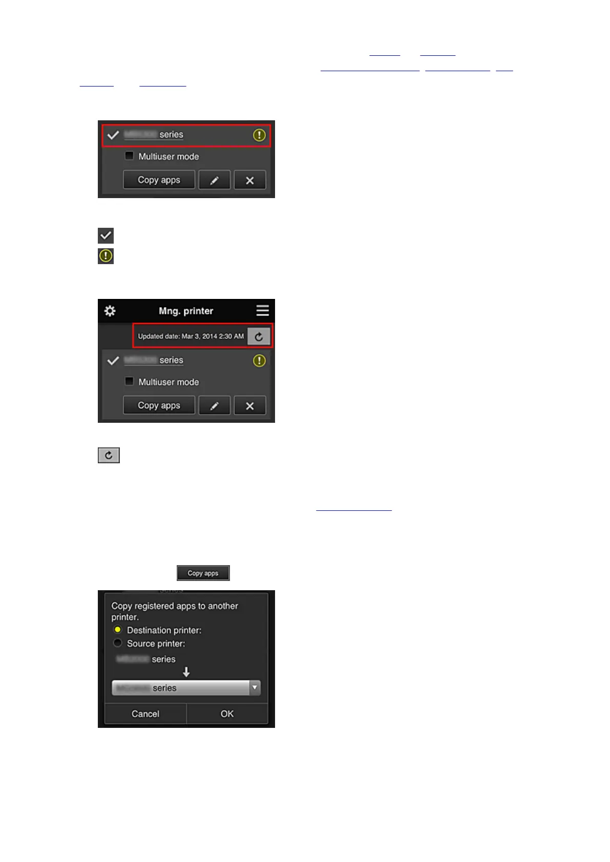 From the Mng. printer screen (Select printer screen), you can check*and update* printer information