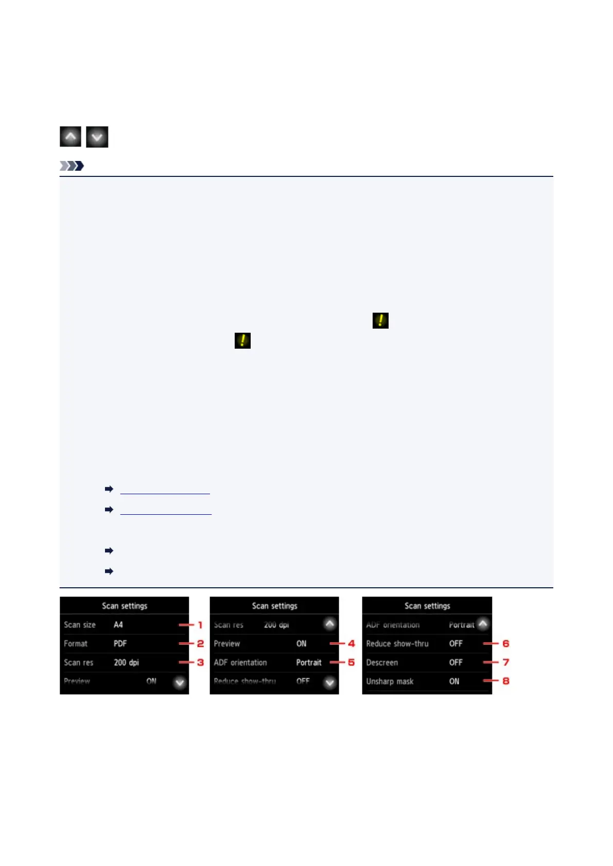 • When scanning starts in the scan menu that is not available with the specified setting, The specified