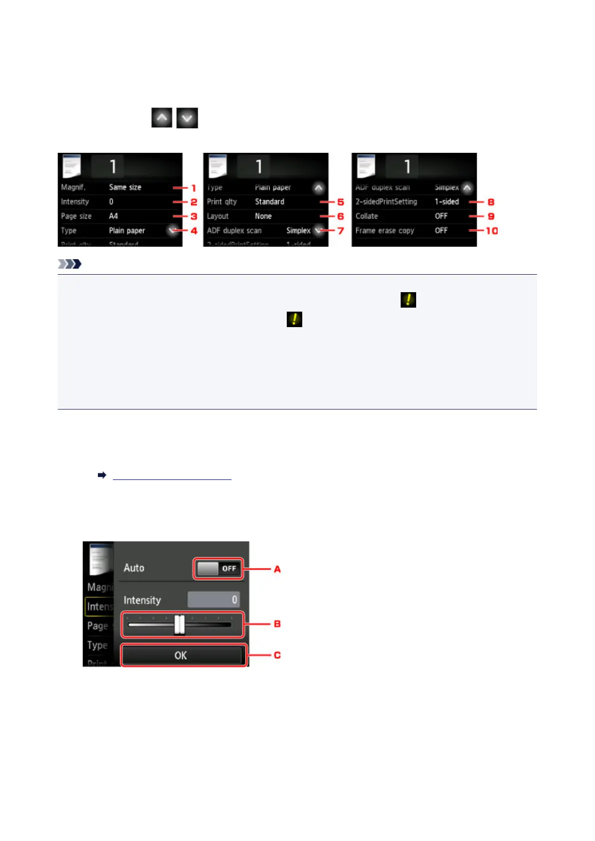 When ON is selected, the intensity is adjusted automatically according to the originals loaded on