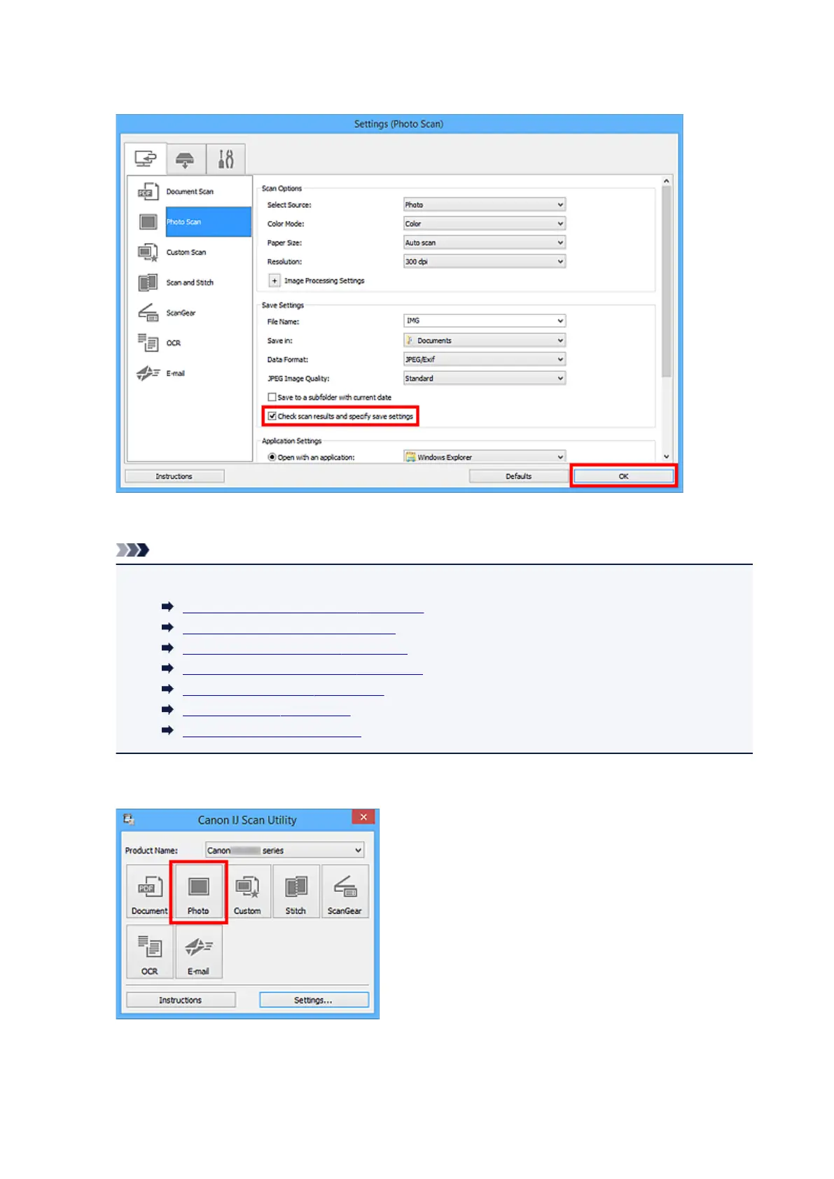 Settings (Photo Scan) Dialog Box