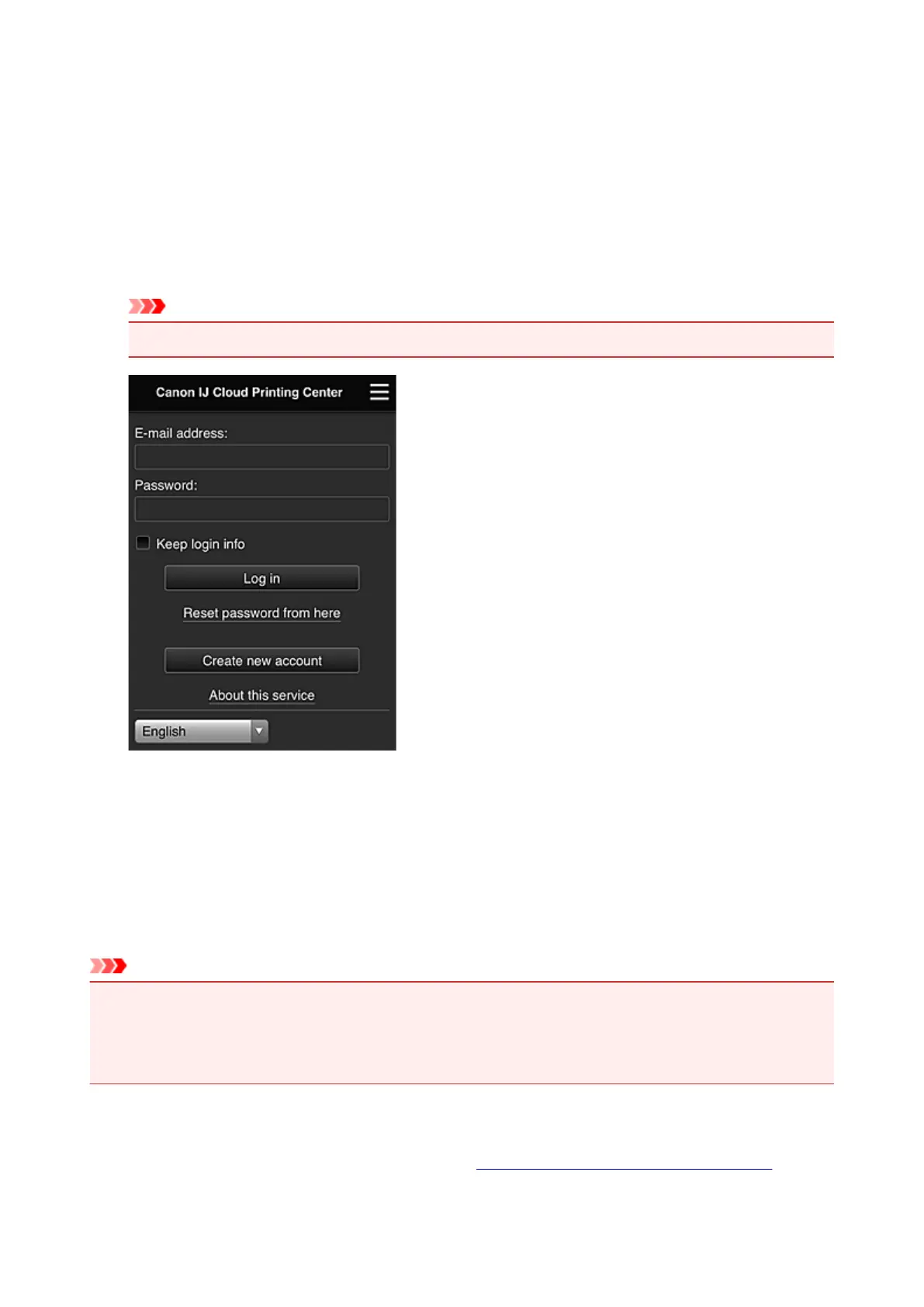 When the user registration is completed, you can log in to the Canon Inkjet Cloud Printing Center and use