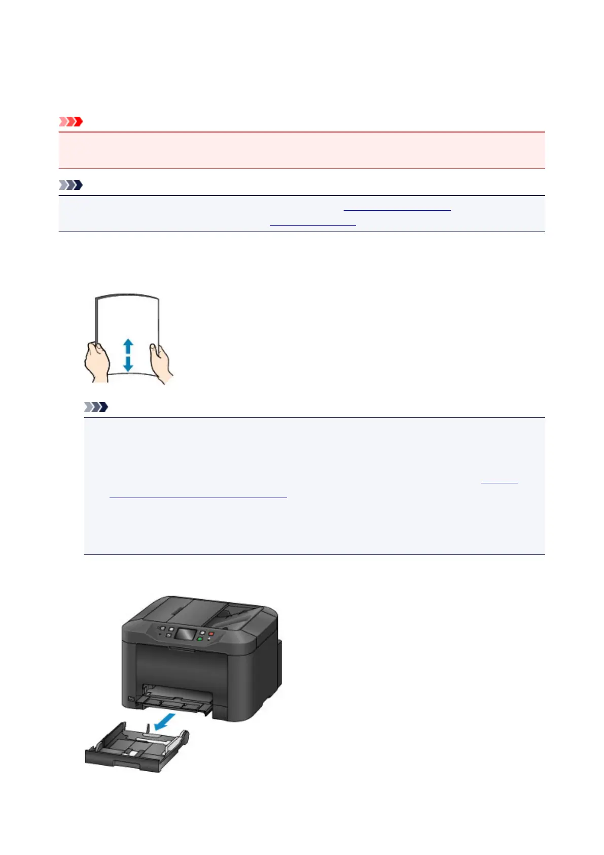 • Align the edges of paper neatly before loading it. Loading an uneven stack of paper may cause
