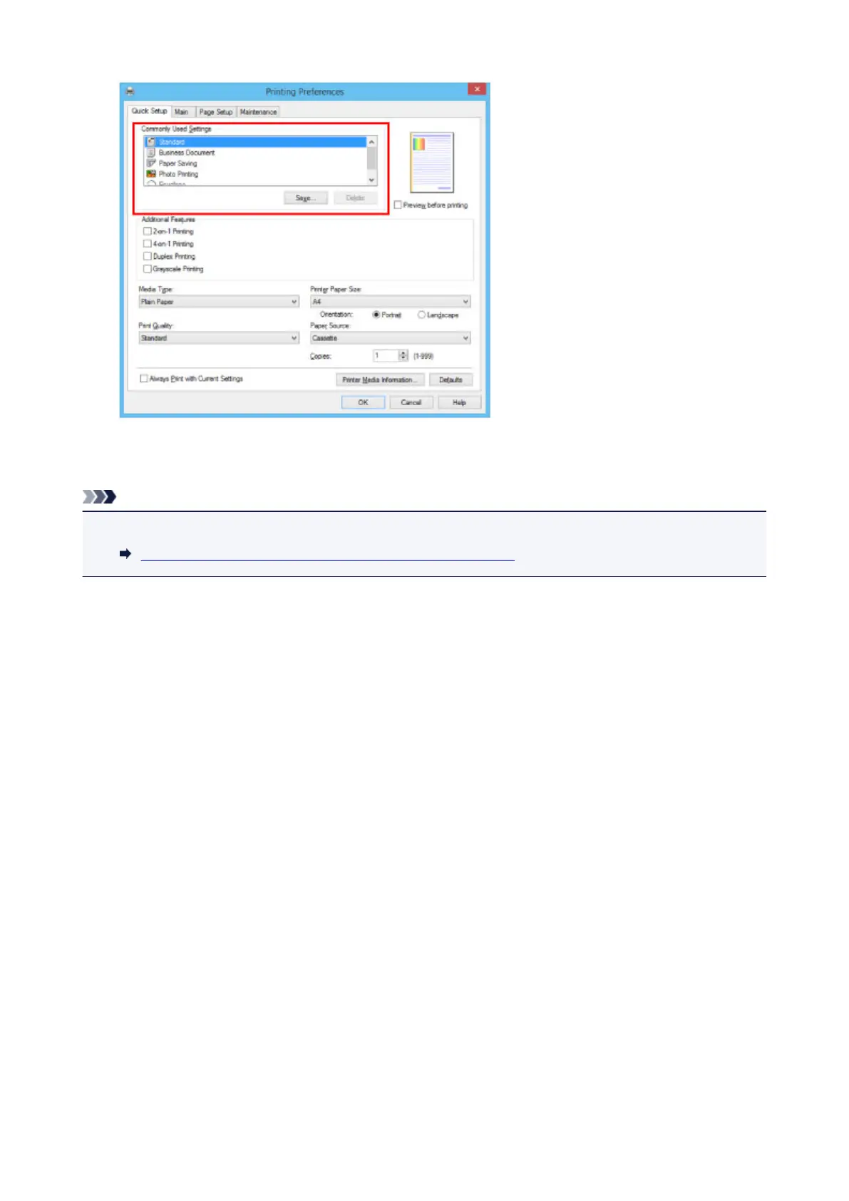 A variety of print settings can be configured with the printer driver.