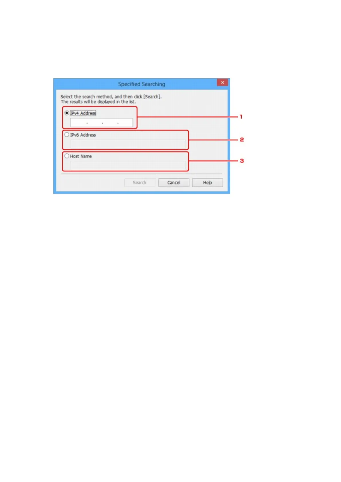 Specifies the IPv4 address of the printer you want to search.