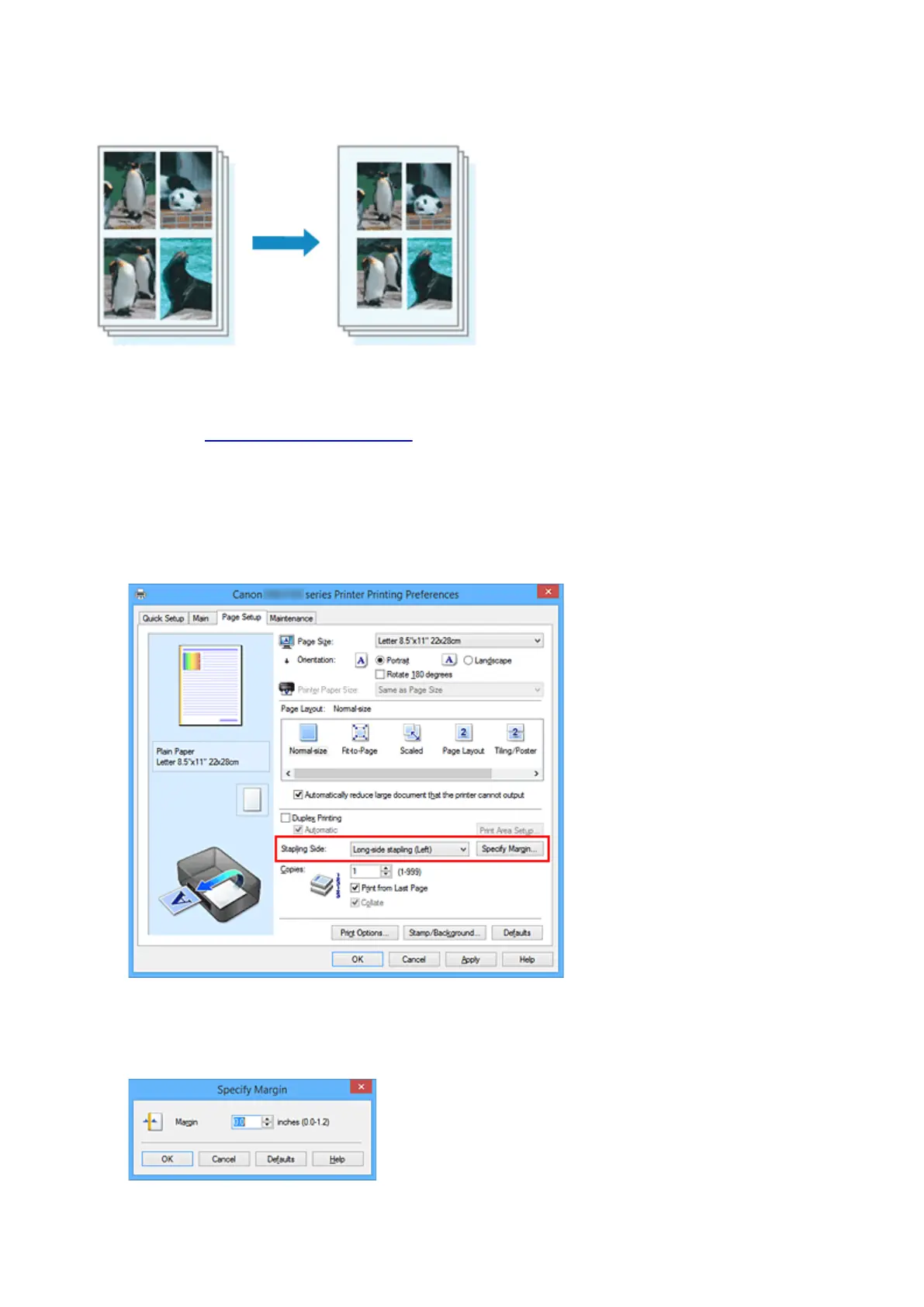 Check the position of the stapling margin from Stapling Side on the Page Setup tab.