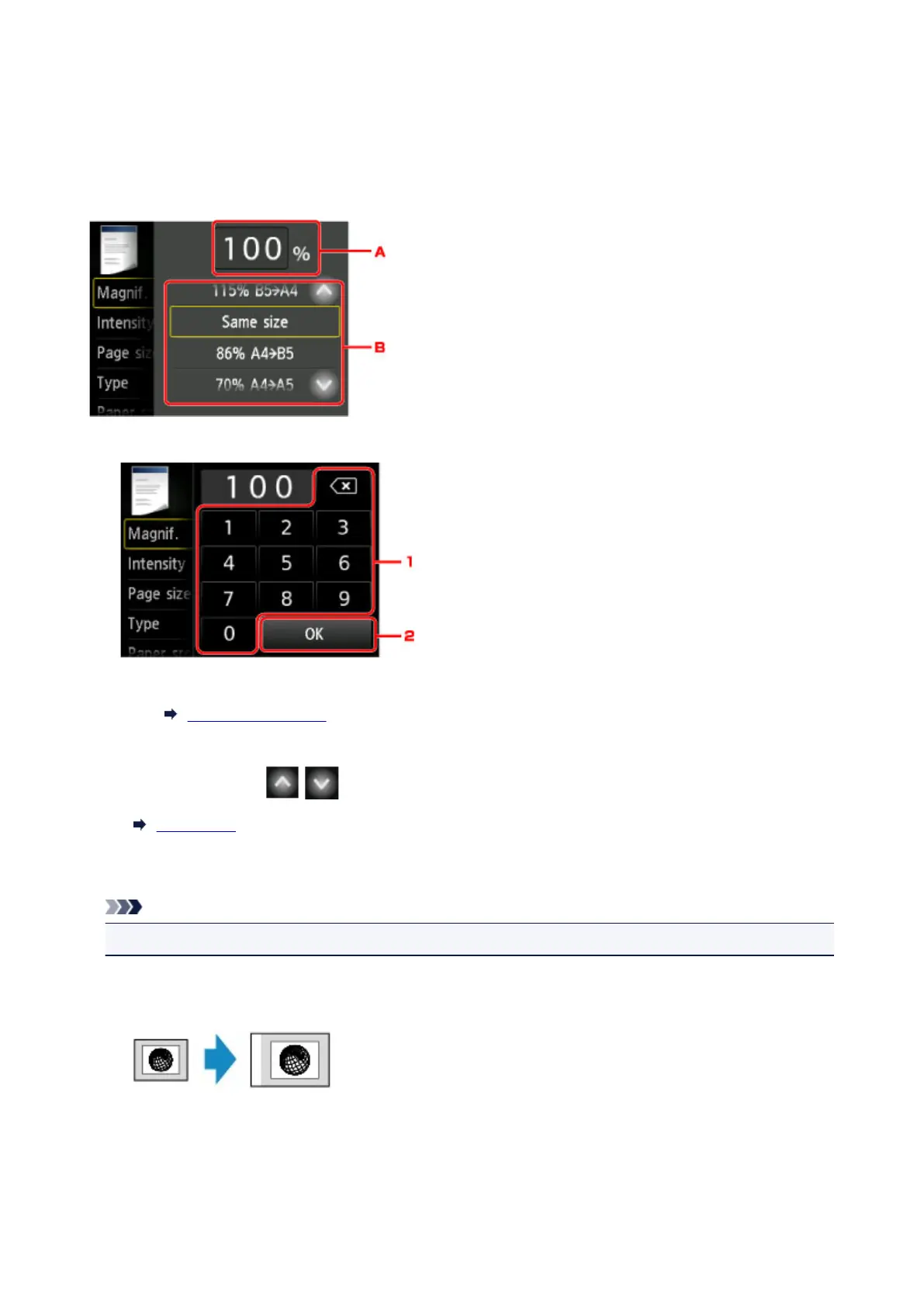 • Some of the reduction/enlargement methods are not available depending on the copy menu.