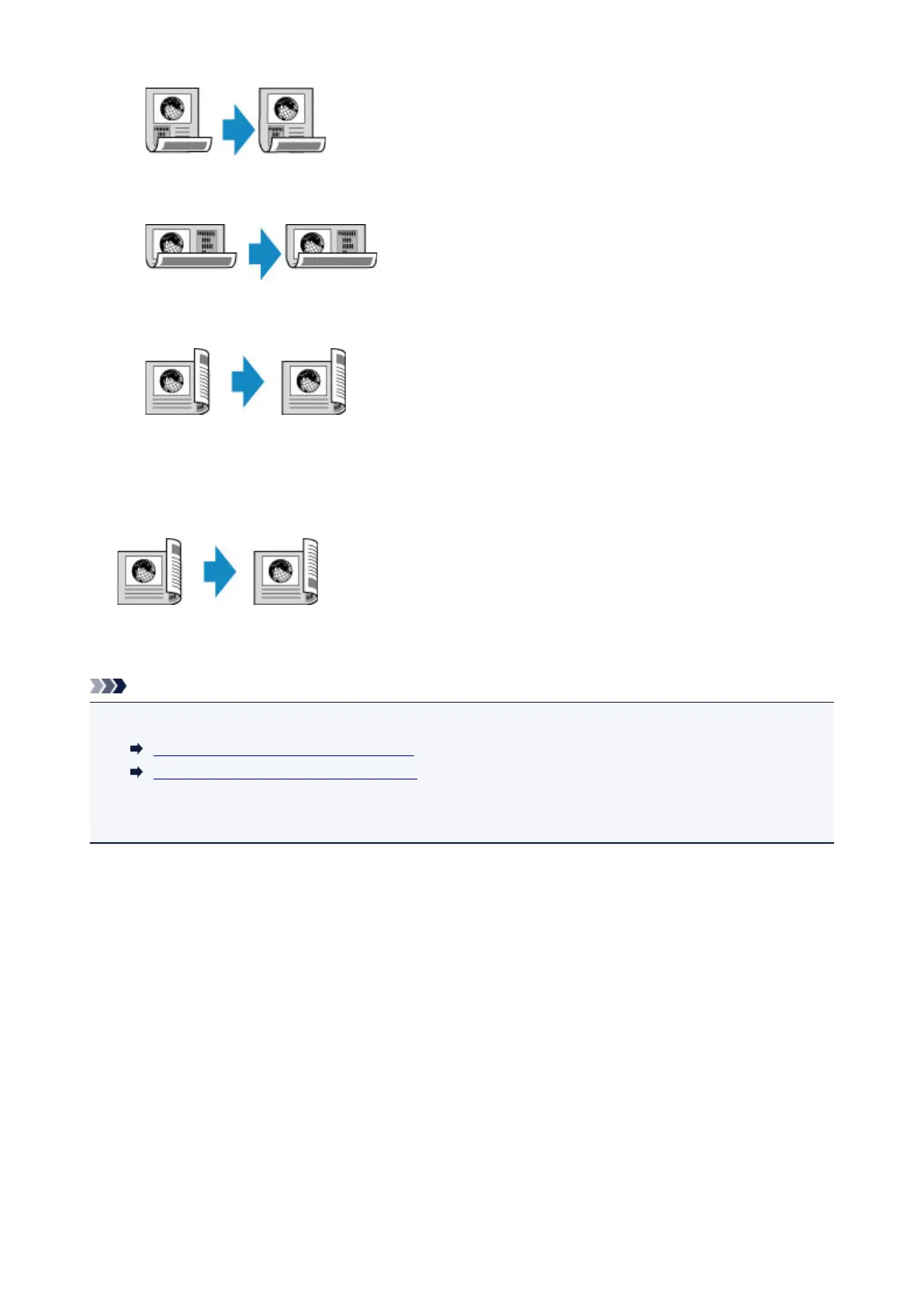 Ex: When you select Orientation: Landscape, Original: Long side bind, and Output: Short side