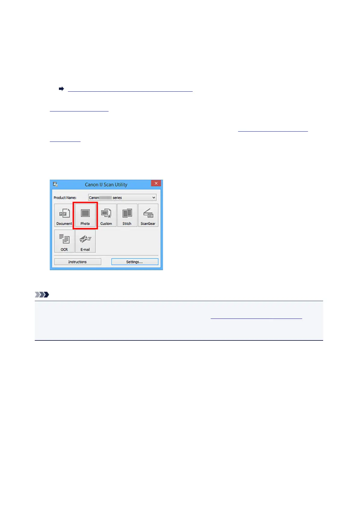 displayed by clicking Settings.... In the Settings (Photo Scan) dialog box, you can also make