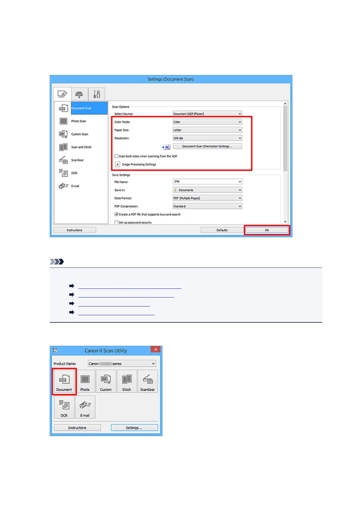 Click Document Scan Orientation Settings... to specify the orientation of the documents to be