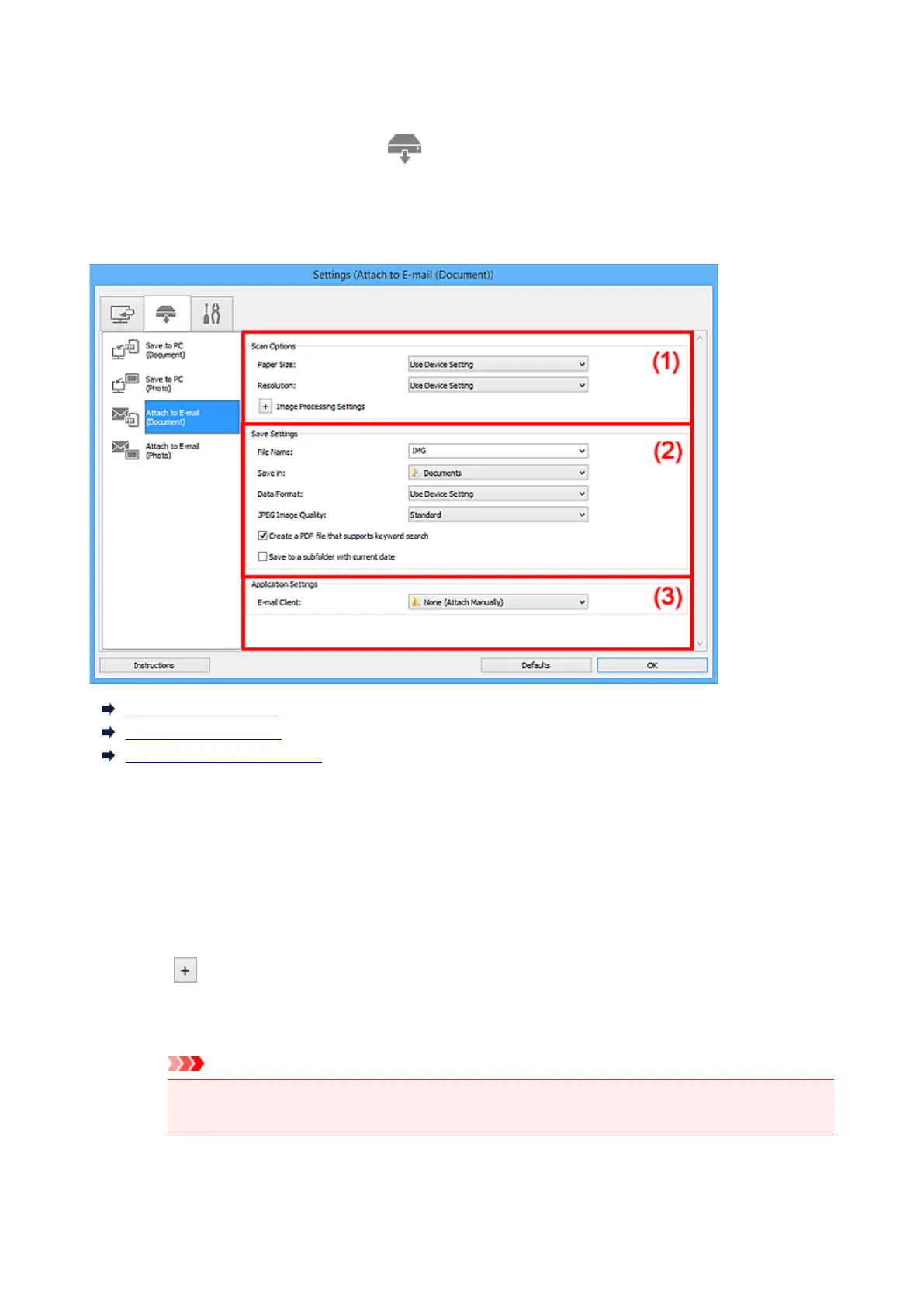 Settings (Attach to E-mail (Document)) Dialog Box
