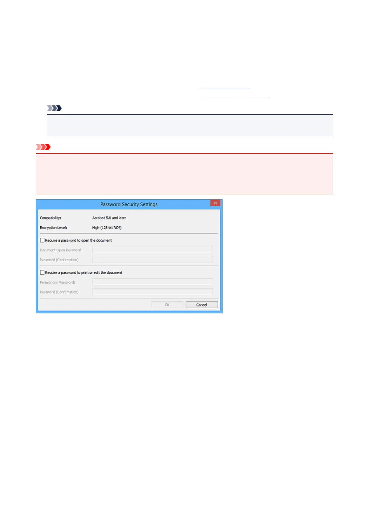 • Password-protected PDF files cannot be opened in applications that do not support security settings for