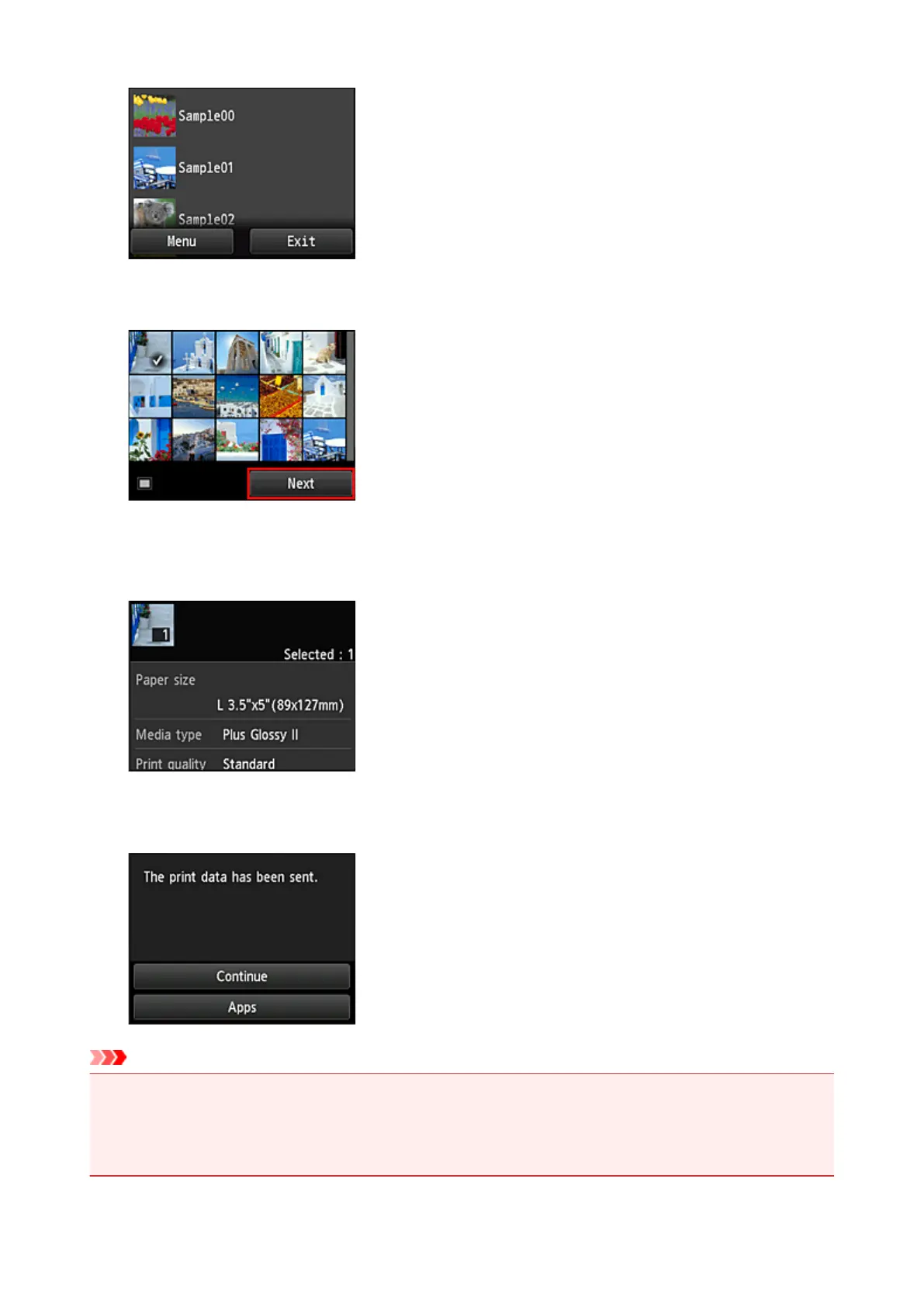 In the displayed image list, select the image that you want to print, and then select Next